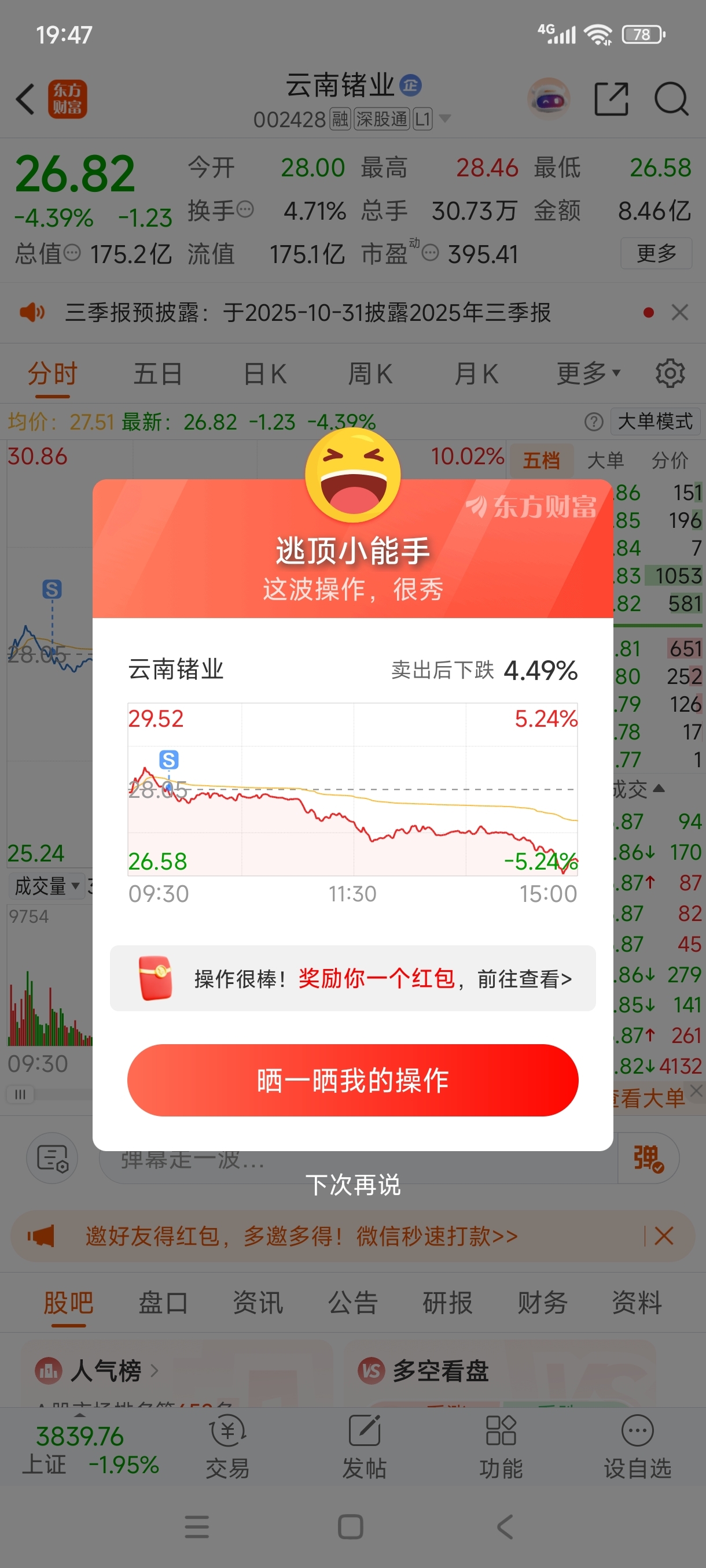 $云南锗业(SZ002428)$ 开盘发现不妙,立马卖出走人