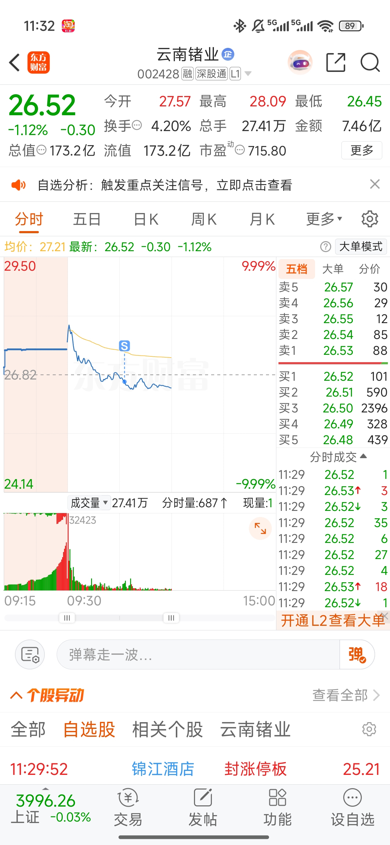 $云南锗业(SZ002428)$ 没意思四个点没走,没时间陪你完了亏四个点走了你牛