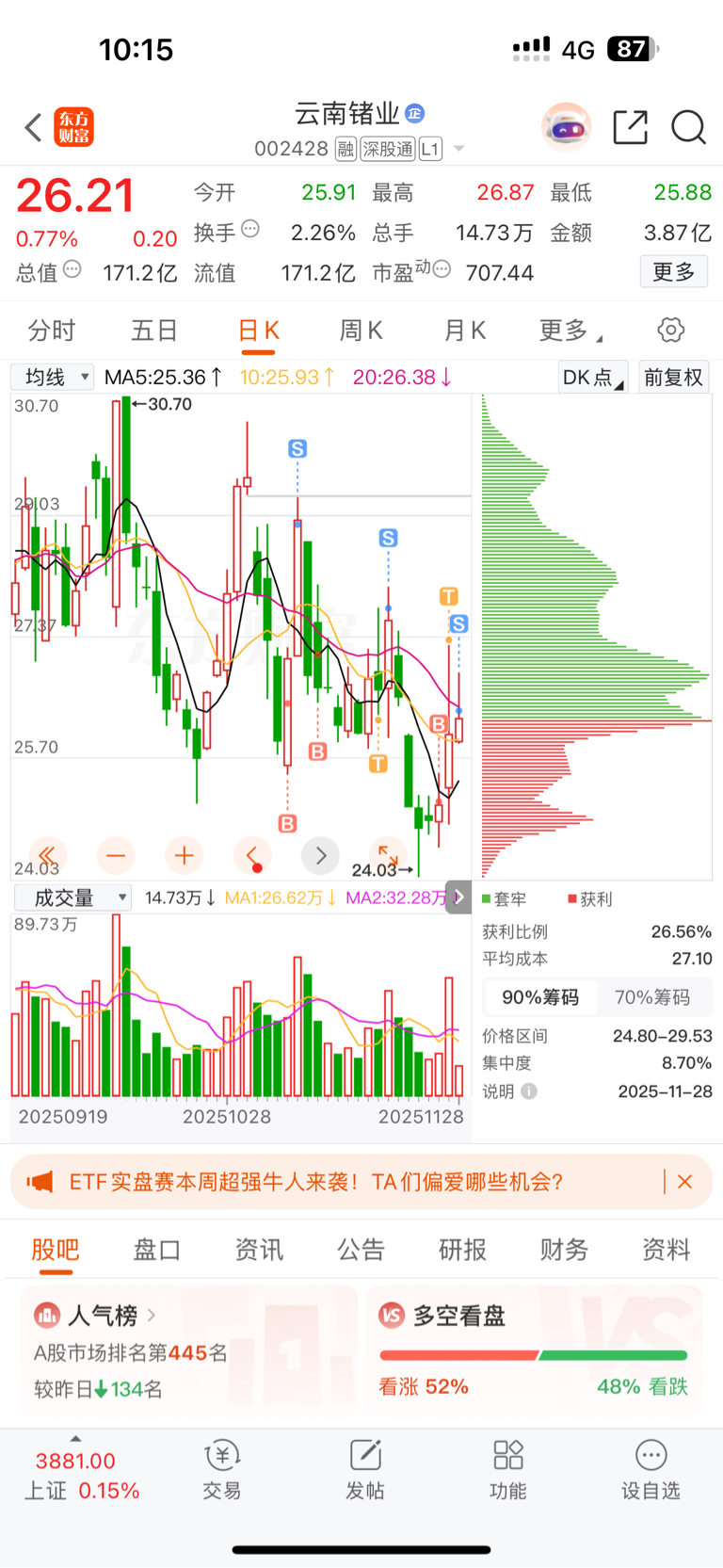 $云南锗业(SZ002428)$ 留下的各位发财!看情绪今天可以尾盘我会重新进!