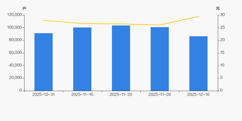 2025年10月31日至今,公司股东户数有所下降,区间跌幅为5.30%。2025年10月31日至2025年12月10日区间股价上涨5.55%。