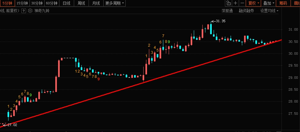 从五分钟K线图来看,今天开盘很重要,决定了今天的走势。至少要平开才行。大资金上是