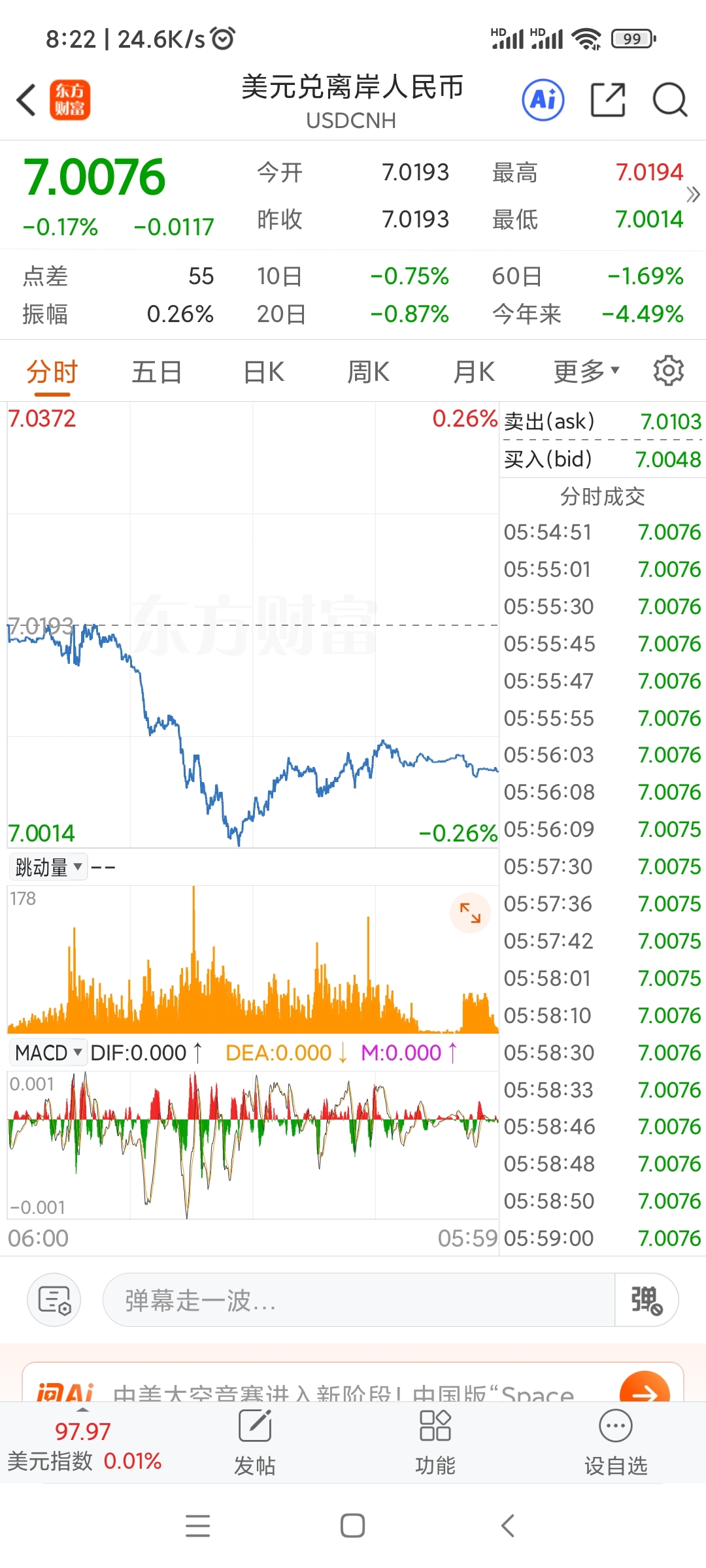 人民币难倒今天要破7到6,利好大盘,但不一定利好此股