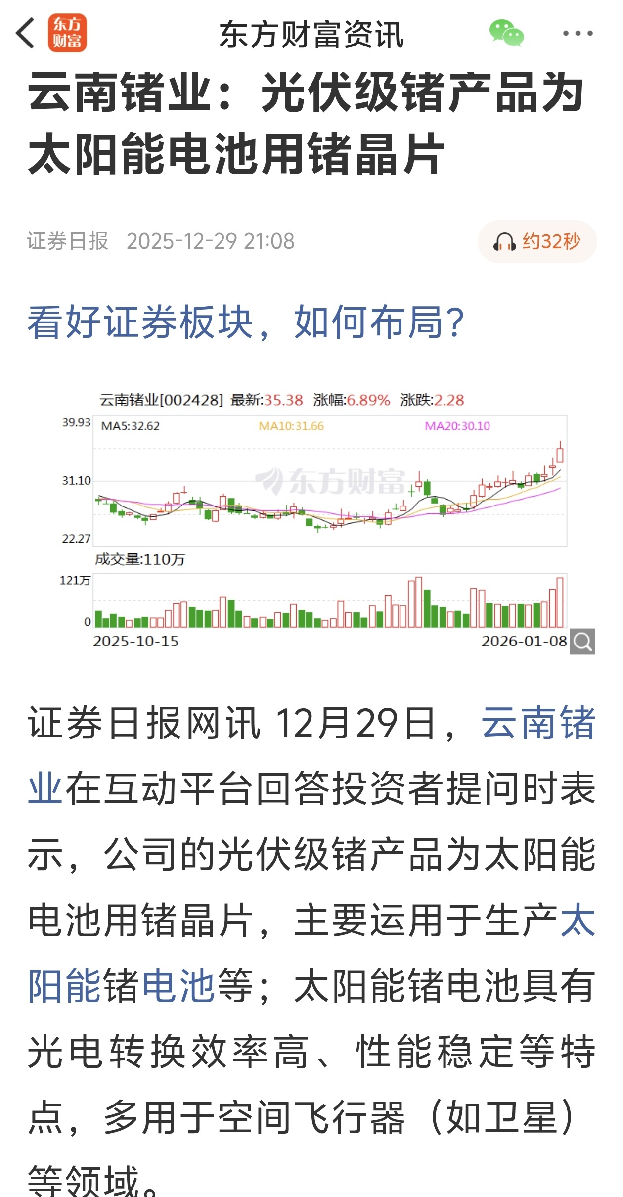 $云南锗业(SZ002428)$ 一旦形成主升通道有望再度开启,我们可着眼更长远的行情布局。当然市场不会一帆风顺,连续上涨之后肯定会有人落袋为安,出现短暂回调,而这类产品成长性确认走势技术性回调实则是趋势延续的必要蓄势过程。