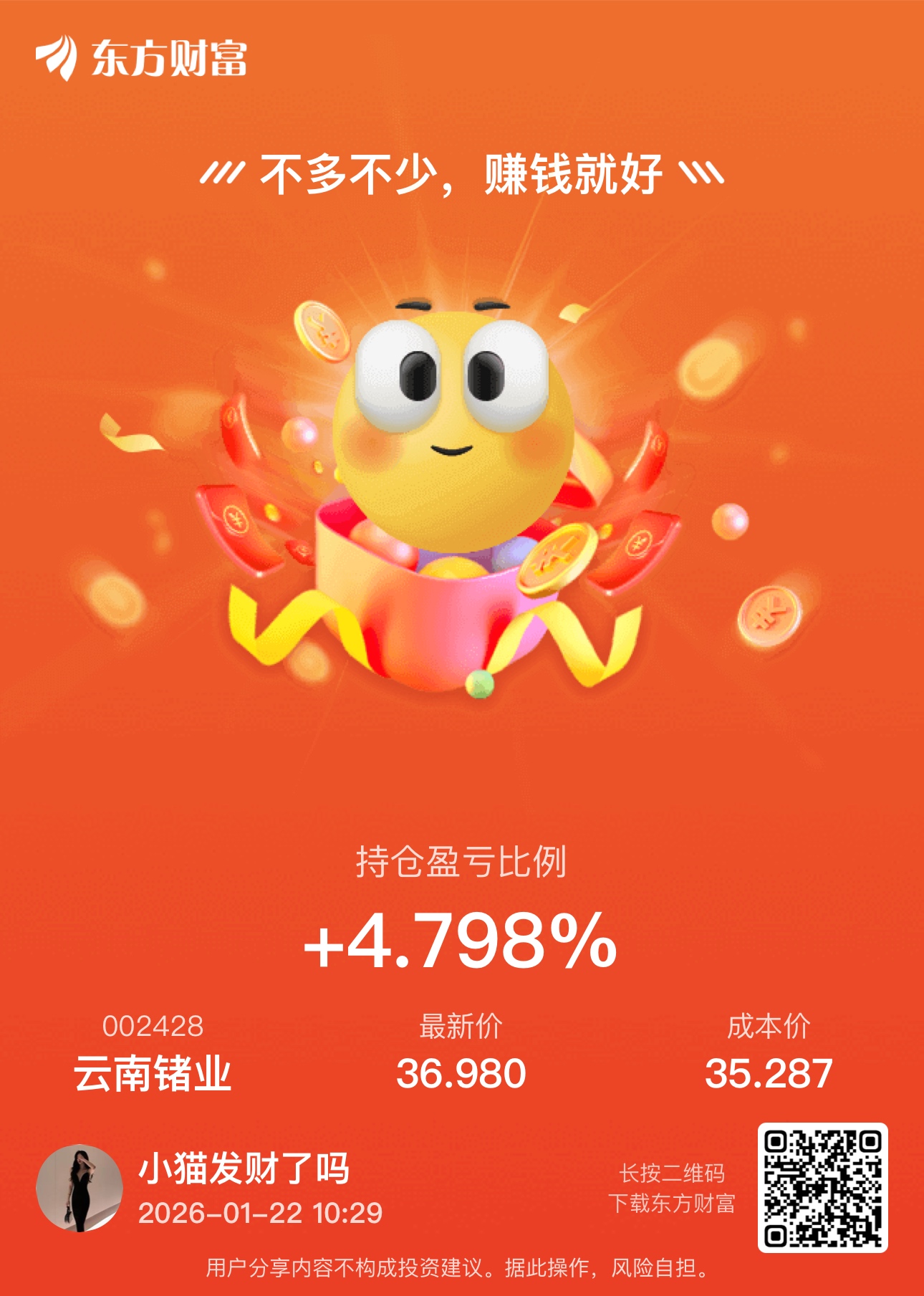 温馨提示: 1.根据《证券法》规定,禁止编造、传播虚假信息或者误导性信息,扰乱证券市场;2.用户在本社区发表的所有资料、言论等仅代表个人观点,与本网站立场无关,不对您构成任何投资建议。用户应基于自己的独立判断,自行决定证券投资并承担相应风险。《东方财富社区管理规定》