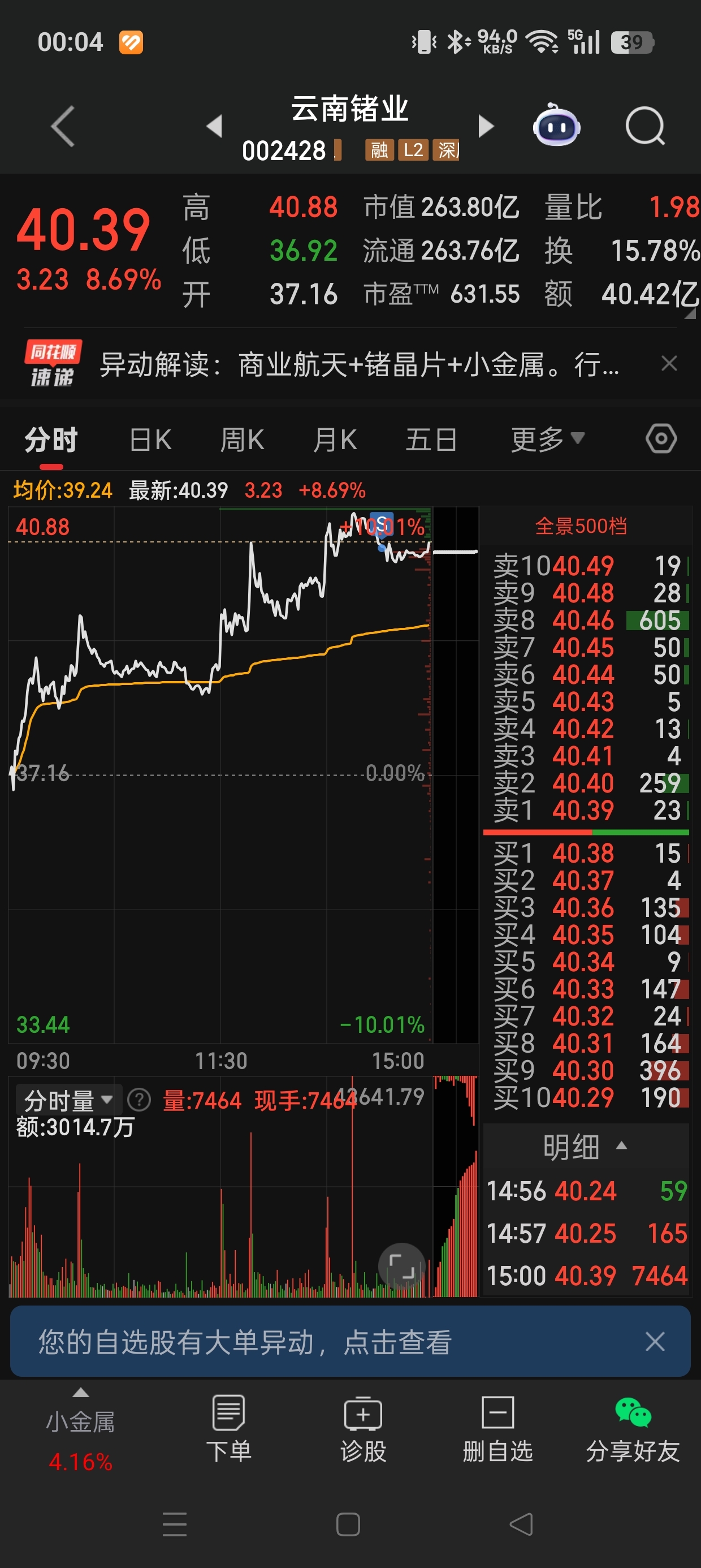 $云南锗业(SZ002428)$ 塞翁失马,焉知非福,一上午都在懊悔周五T飞了,看能不能低位接回来