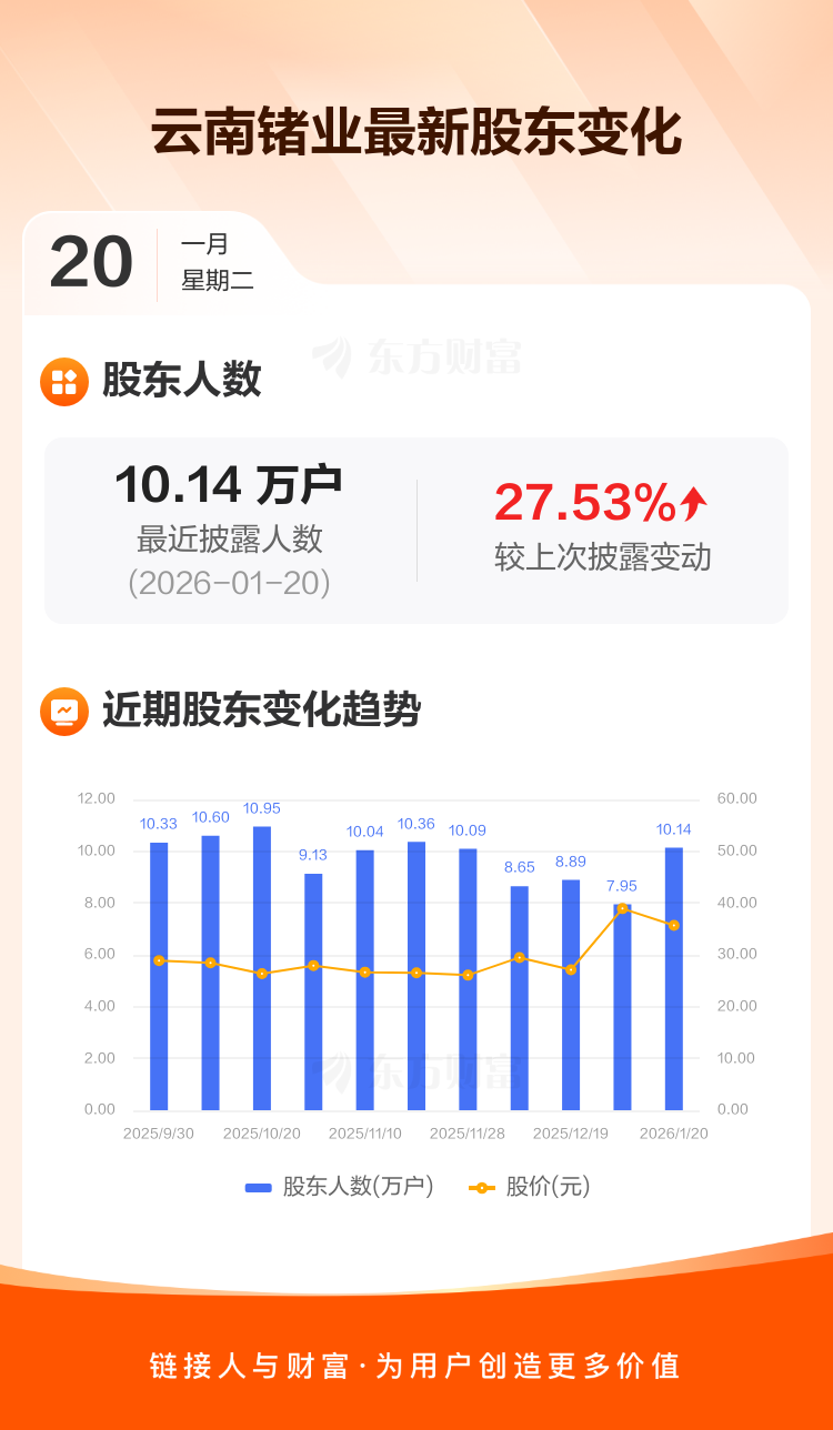 云南锗业:截至1月20日最新股东户数10.14万户,较上期增加27.53%