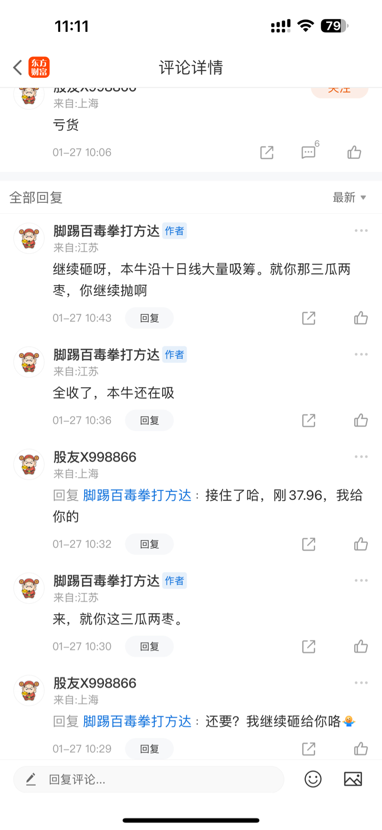 本牛要公布的韭菜一个纯粹的韭菜就是这个笑话,股友X998866,昨天把他手中的三瓜两枣37.96砸了,还在骂本牛,本牛接了他的货,现在已经有5个点的盈利,随时可以出。他可能在别的地方又吃了最个点面。