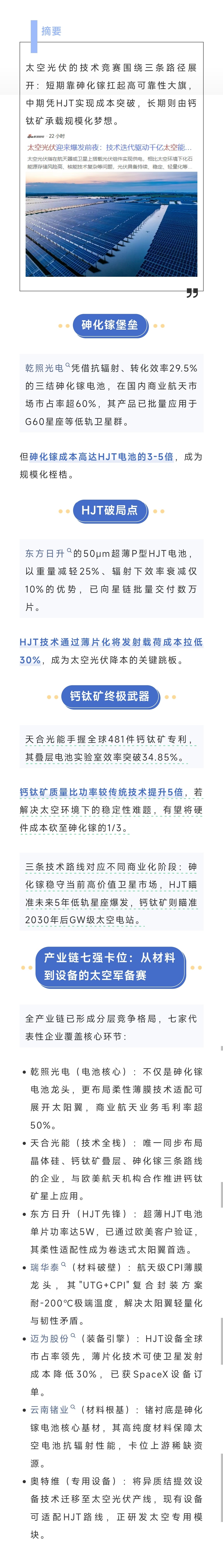 砷化镓、HJT、钙钛矿争雄,太空光伏产业链七强谁能笑傲江湖?