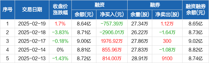 兆驰股份:融资净偿还757.39万元,融资余额8.64亿元(02-19)