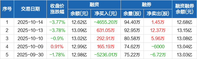 兆驰股份:融资净偿还4655.2万元,融资余额12.62亿元(10-14)