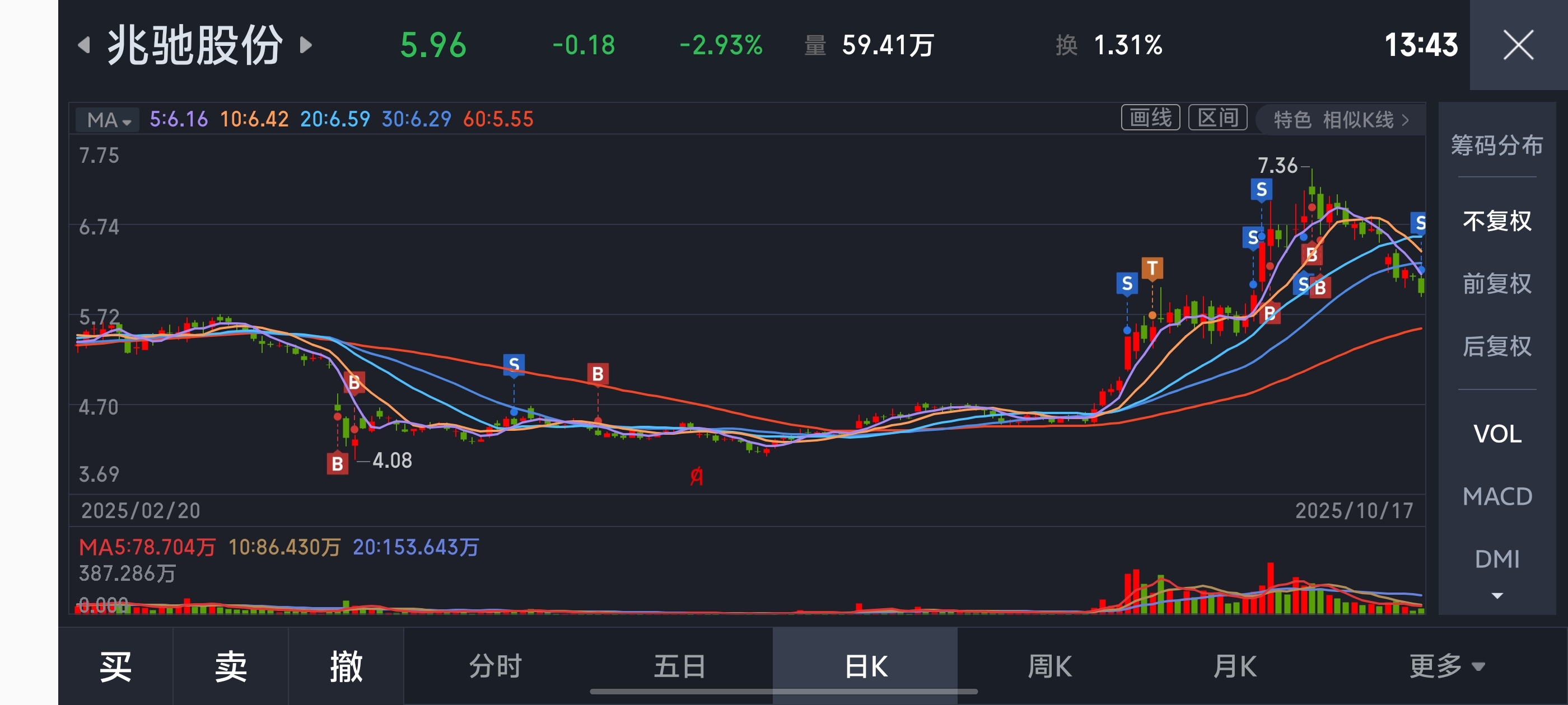 盈利5000没走,失败的操作在高位还加重仓了,今天低点5.93全割肉销户,余盈1