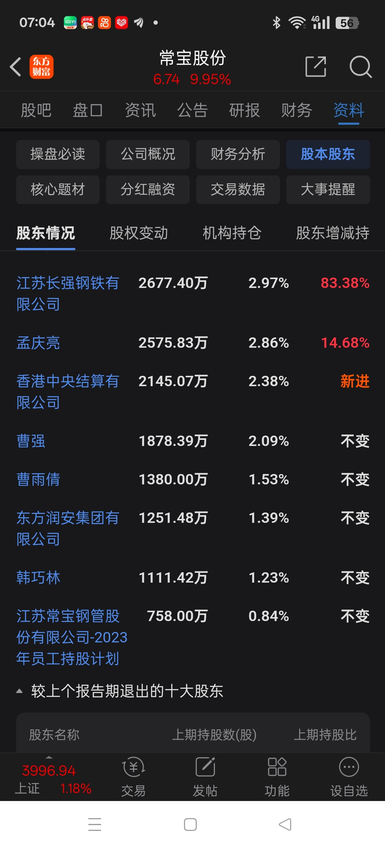 从香港结算的沪股通深股通进出情况,观察主力操作手法。常宝股份新进深股通股东操作手