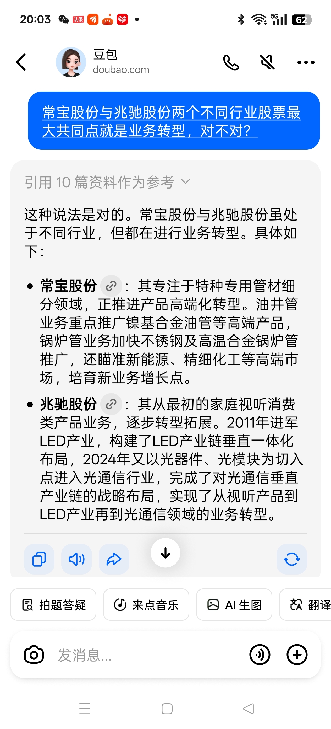 $兆驰股份(SZ002429)$ 从常宝股份二连板推测兆驰股份未来走势,二个行业不同,股本不同的股票,最大的共同点就是业务“转型“”。