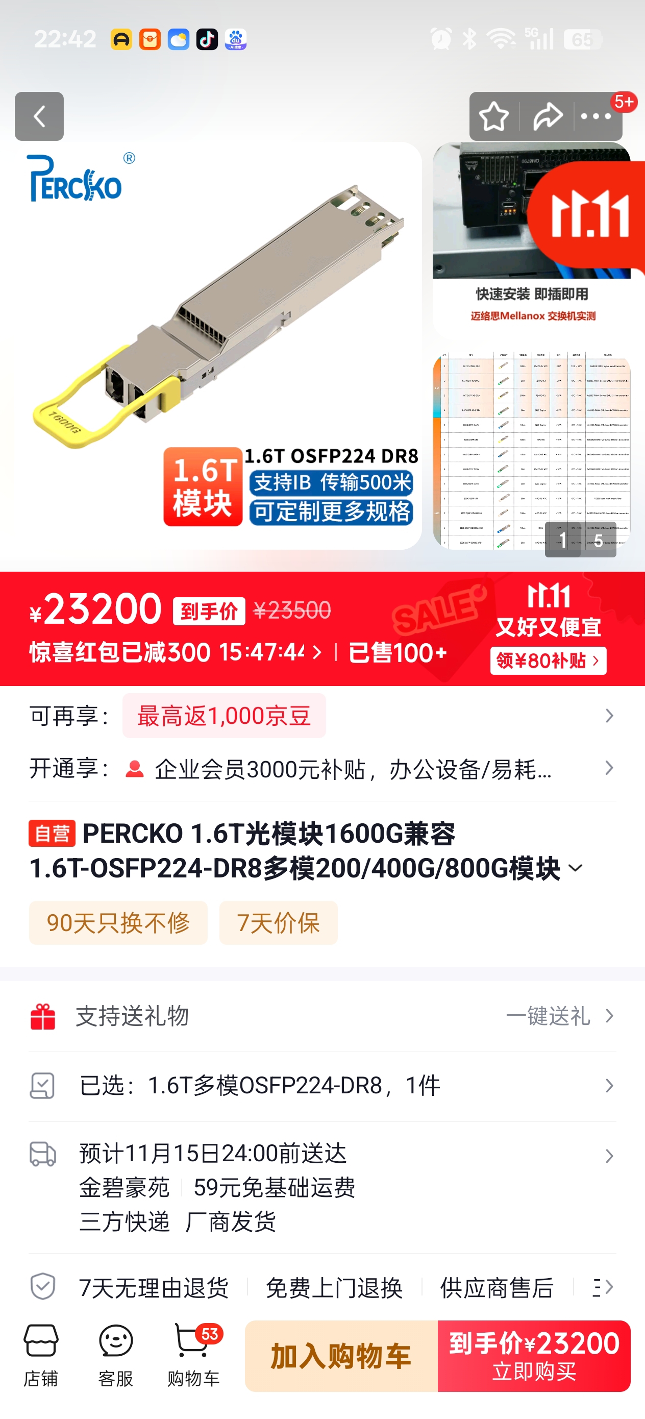请看光模块的价值,京东双十一价,1.6T光模块也要23200元,10元不到的光模