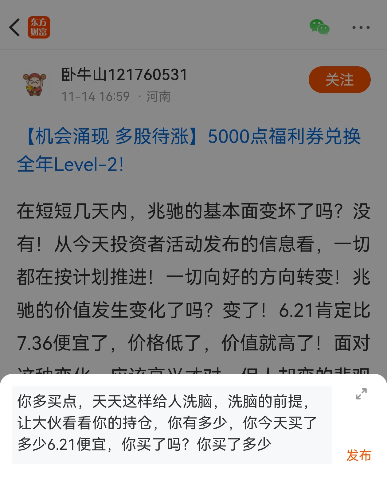 温馨提示: 1.根据《证券法》规定,禁止编造、传播虚假信息或者误导性信息,扰乱证券市场;2.用户在本社区发表的所有资料、言论等仅代表个人观点,与本网站立场无关,不对您构成任何投资建议。用户应基于自己的独立判断,自行决定证券投资并承担相应风险。《东方财富社区管理规定》