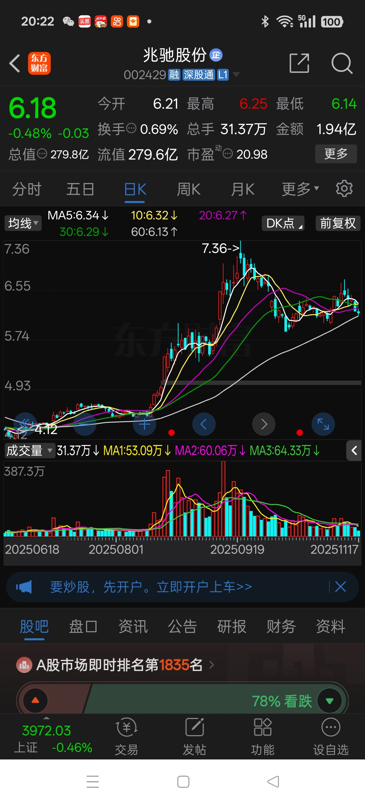 $兆驰股份(SZ002429)$ 今天的地量已经和5元以下时量差不多了。洗盘接近尾声,不除外突然砸盘挖一个黄金坑。