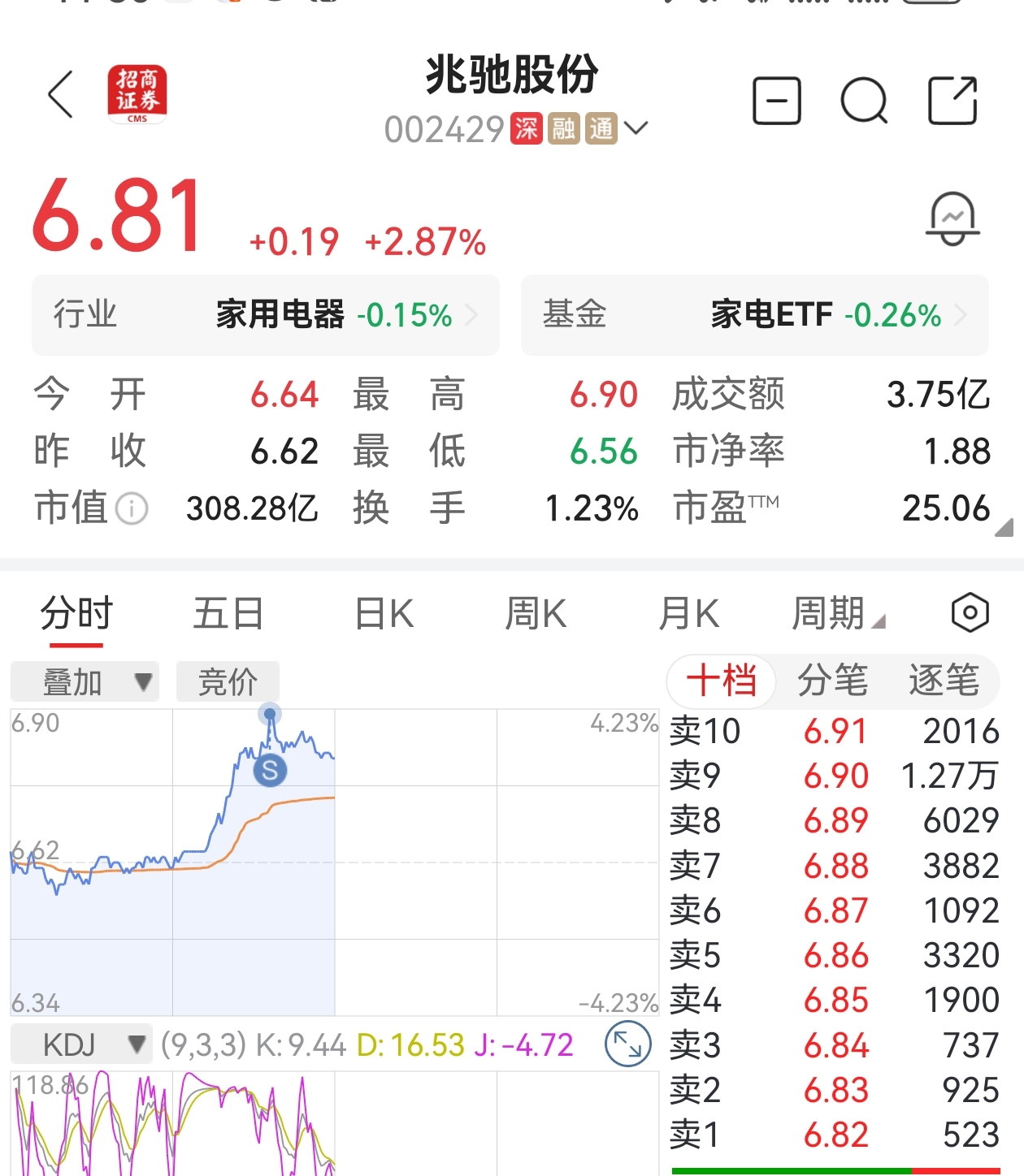 $兆驰股份(SZ002429)$ 这个压力位693太费劲了,两次都上不去,下午破680在买回来,做T吧,垃圾股,从他身上从来没开心过,我买的青山今天直接秒板,那心情多舒服,这是个什么垃圾股,这个庄也是个娘们
