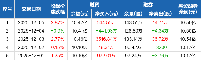 兆驰股份:融资净买入544.55万元,融资余额10.47亿元(12-05)