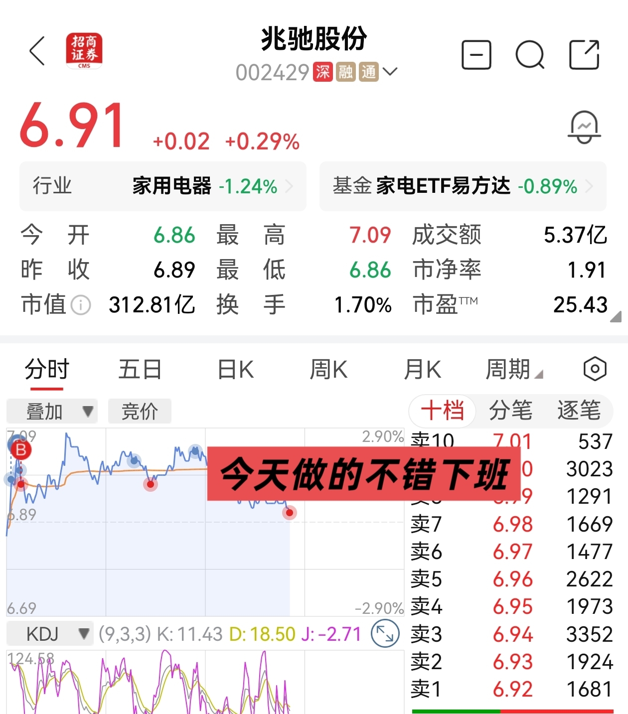 $兆驰股份(SZ002429)$ 691又接回来了,今天可以休息了,下班,保佑收盘693之上,那就可以了