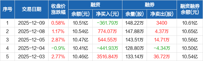 兆驰股份:融资净偿还361.79万元,融资余额10.51亿元(12-09)
