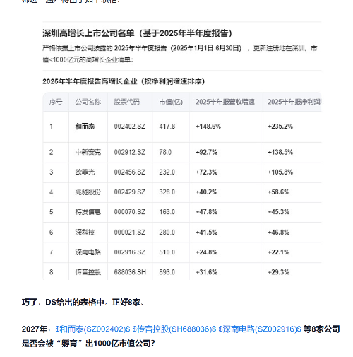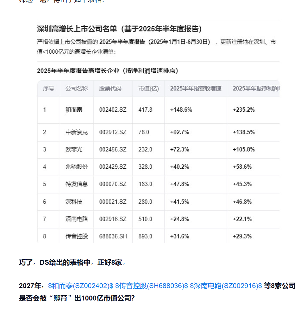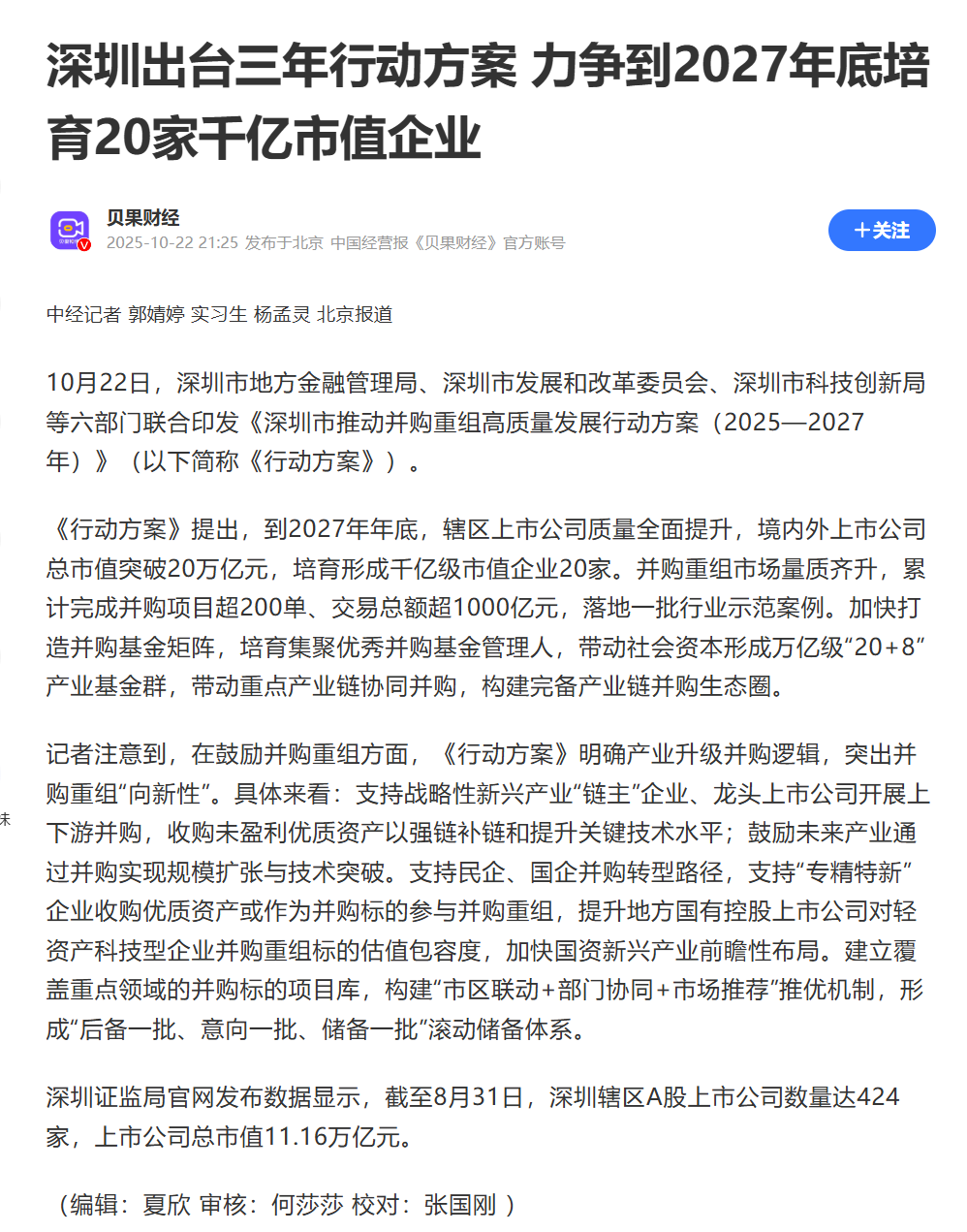 不知道大家还记不记得今年10月份深圳发布的在2027年底培育20家千亿市值公司,