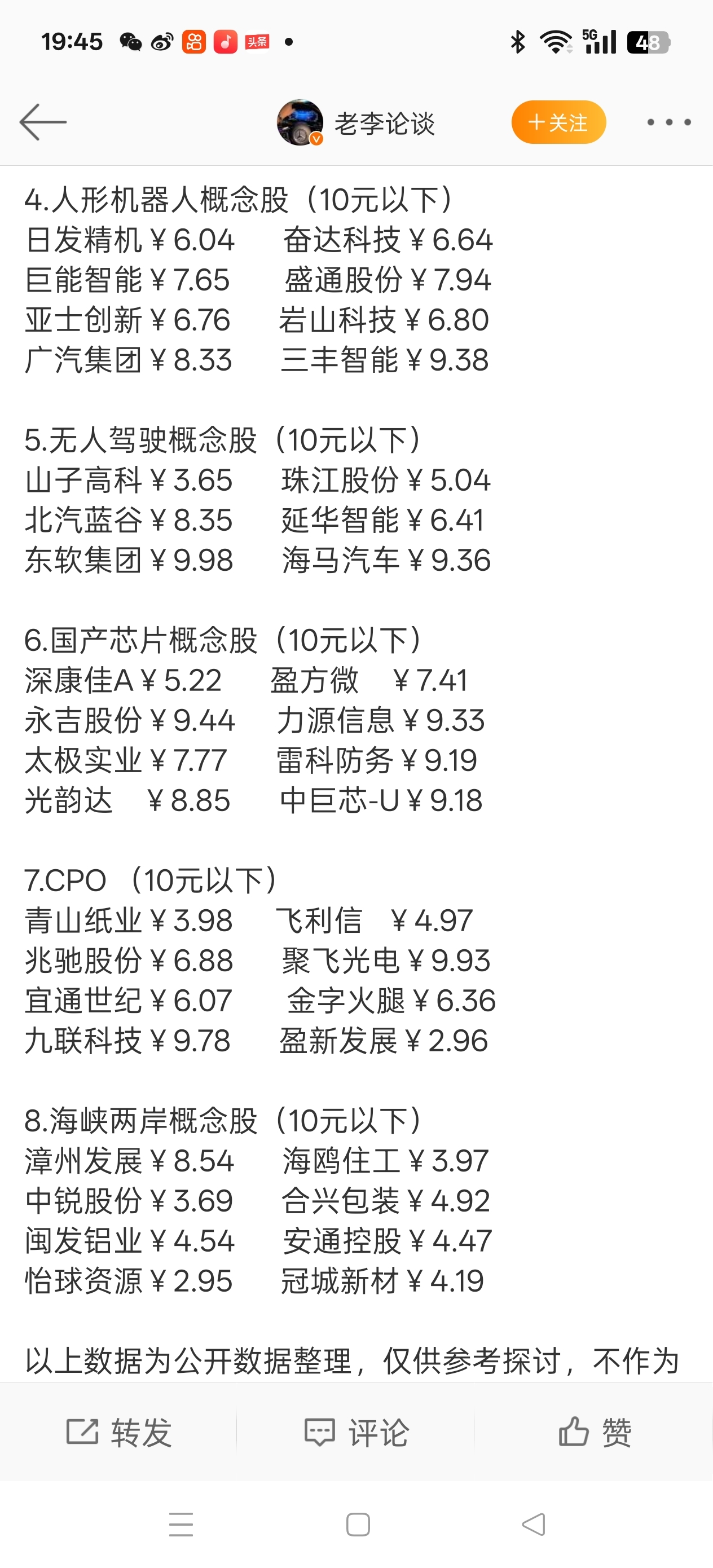 $兆驰股份(SZ002429)$ 看见今天收盘后有博主推荐跨年10元以下股票,其中兆驰股份在列。并且兆驰股份涉及行业多个行业题材在列。