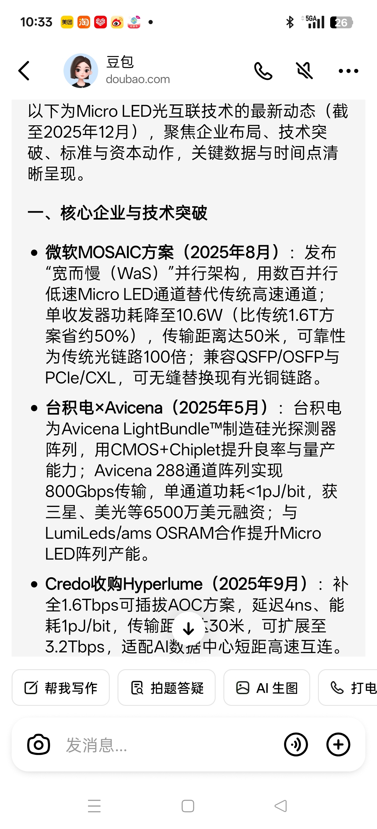 MicroLED光互联技术落地应用大概在2027年.目前最新动态国内在这方面研究