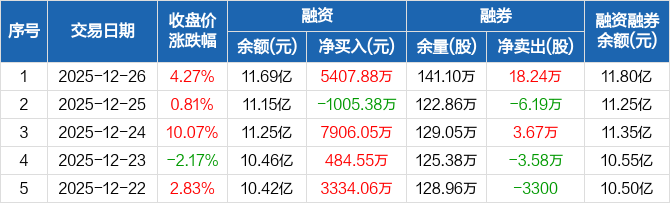 兆驰股份:融资净买入5407.88万元,融资余额11.69亿元(12-26)
