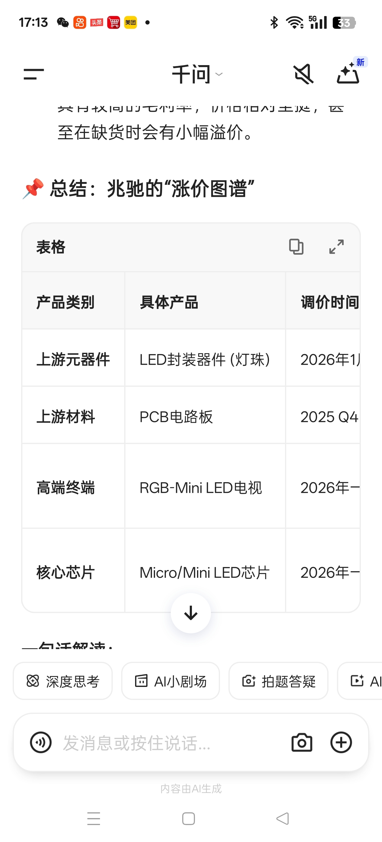兆驰股份今年一季度业绩应该好于2025年一季度。兆驰股份涨价产品。