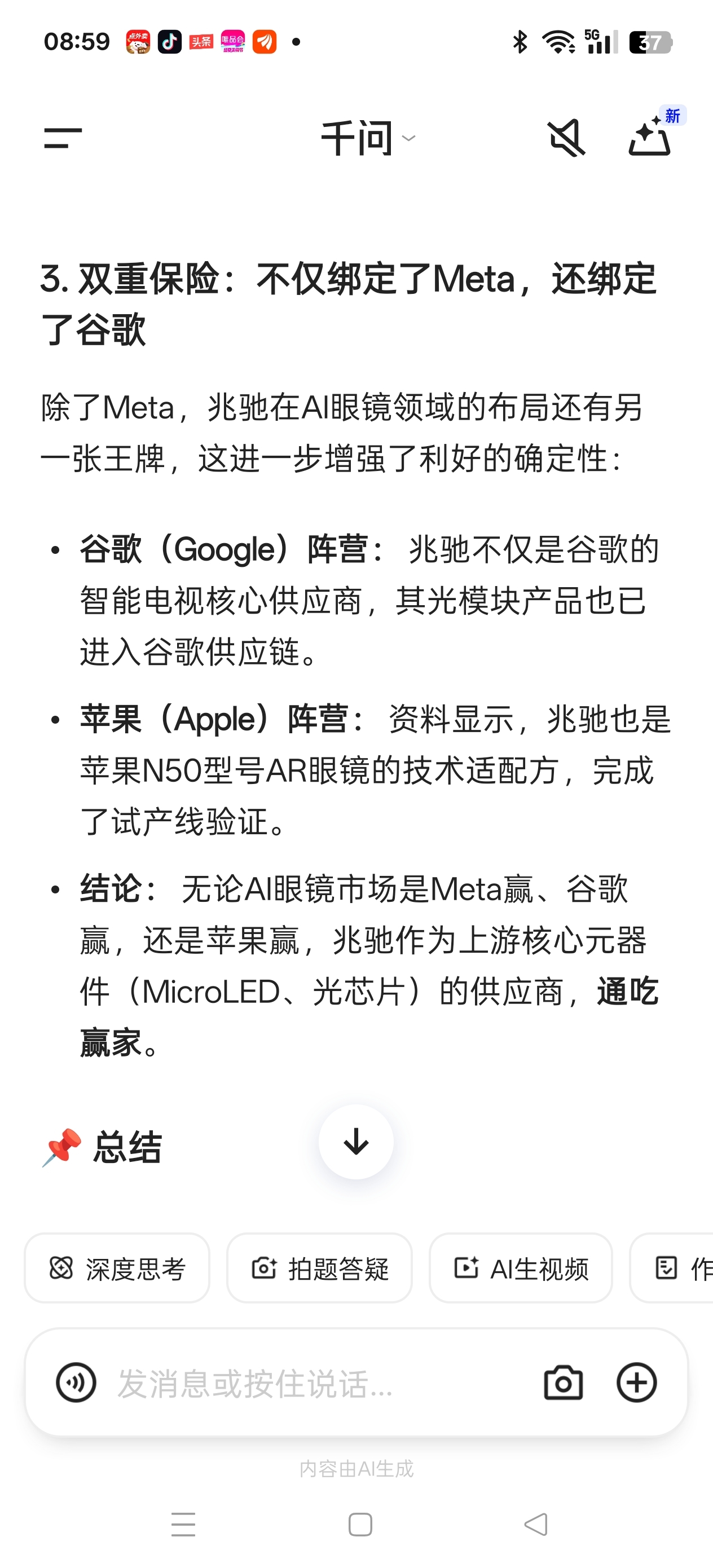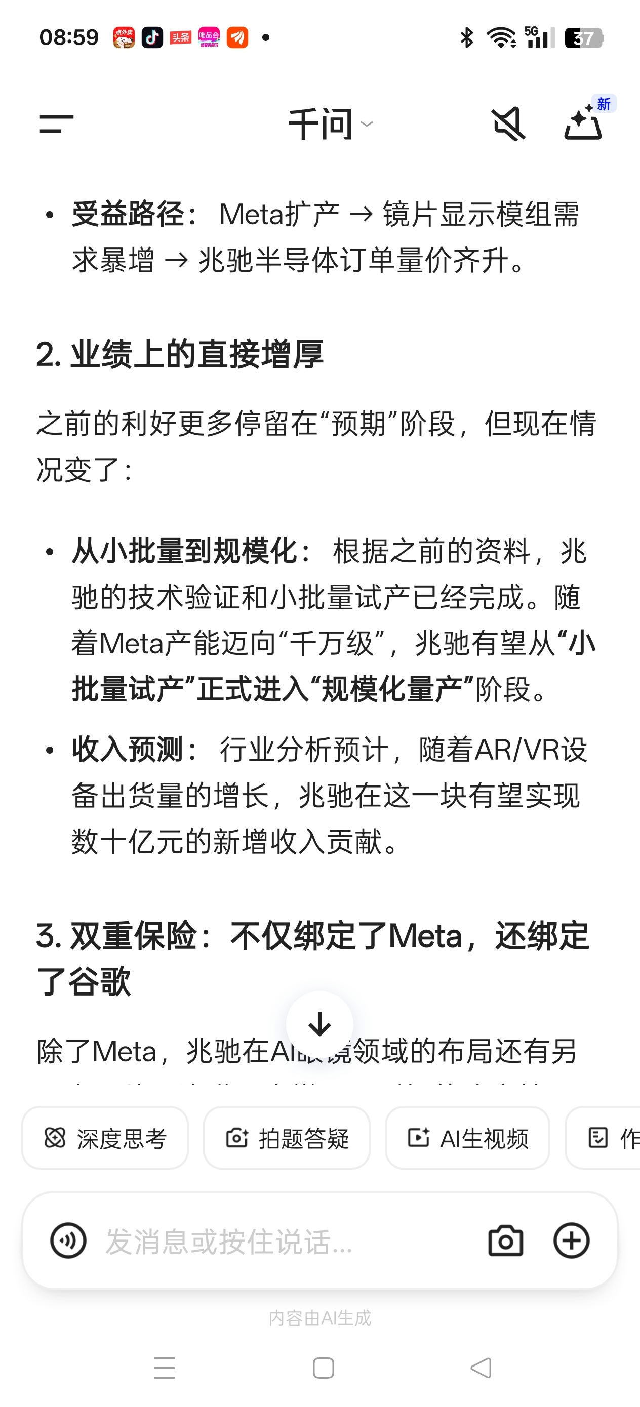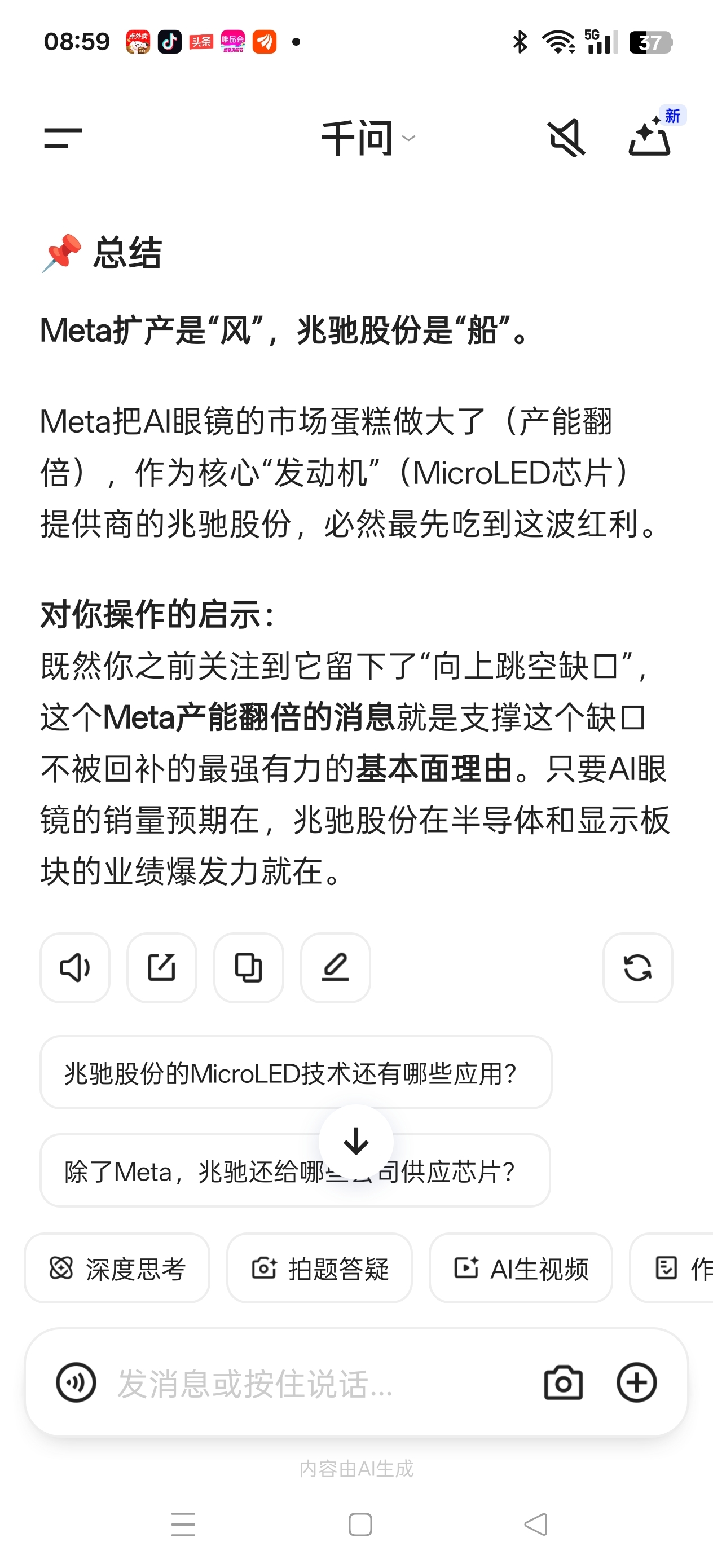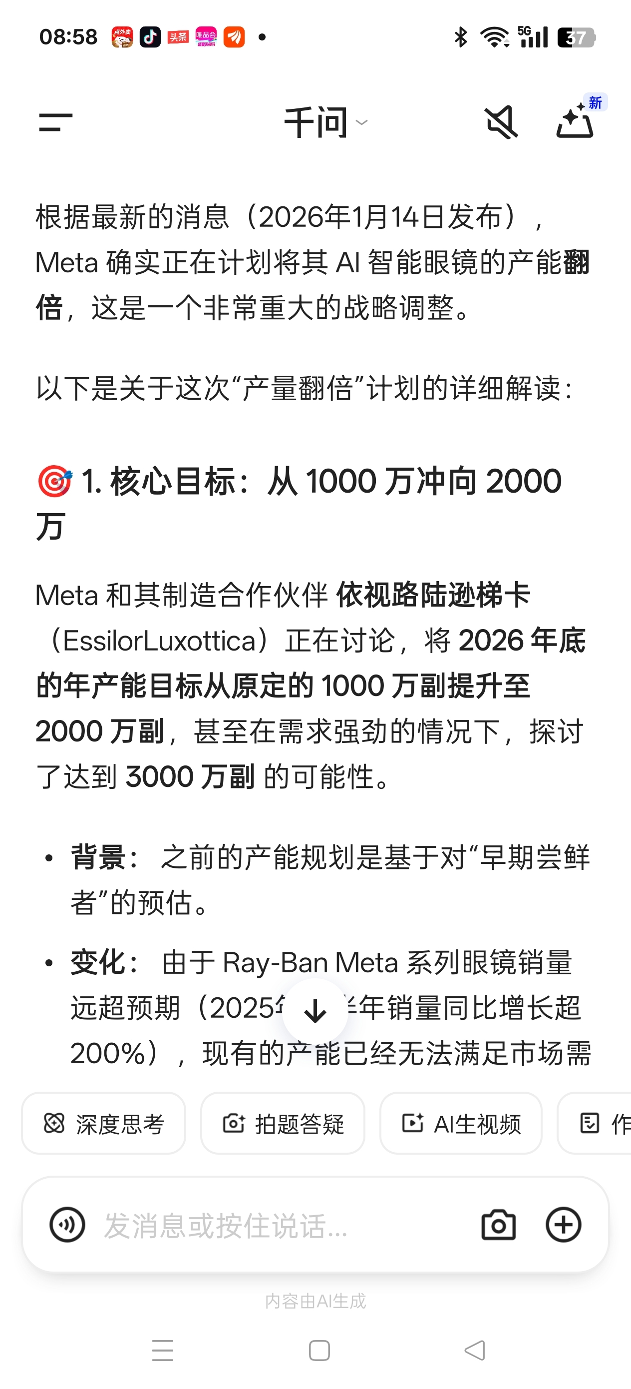 刚刚看到北美Meta拟将Ai眼镜产量翻倍的消息.这对兆驰股份应该是个好消息。准备