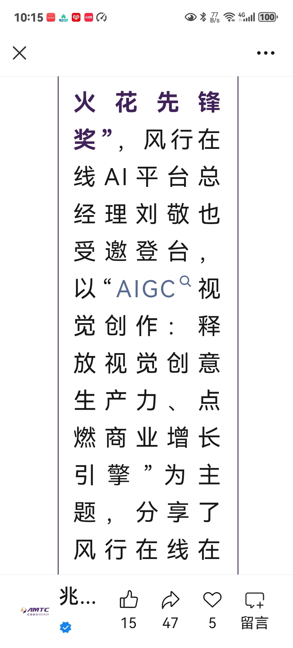兆驰股份子公司北京风行在阿里云组织召开AI火花奖大会上获得火花先锋奖,并与阿里云
