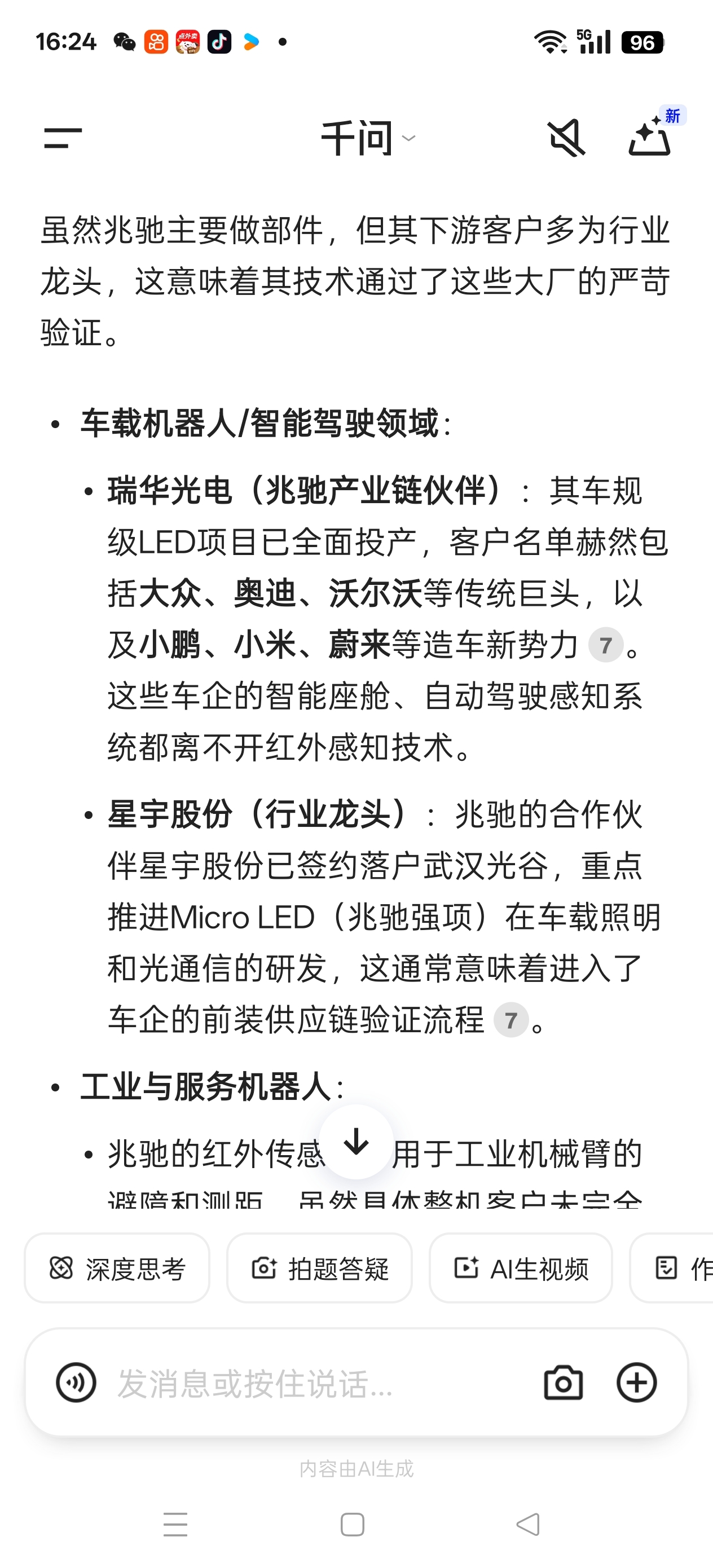 $兆驰股份(SZ002429)$ 作为机器人零部件供应商,兆驰股份已经验证及验证完成合作伙伴不少,我最感兴趣的是兆驰股份与华灿光电Micro LED光互联技术什么时候能够突破技术难关到送样验证阶段,那时候想象空间可太大了,什么数据中心,算力中心,机器人,航天航空用途太大了。