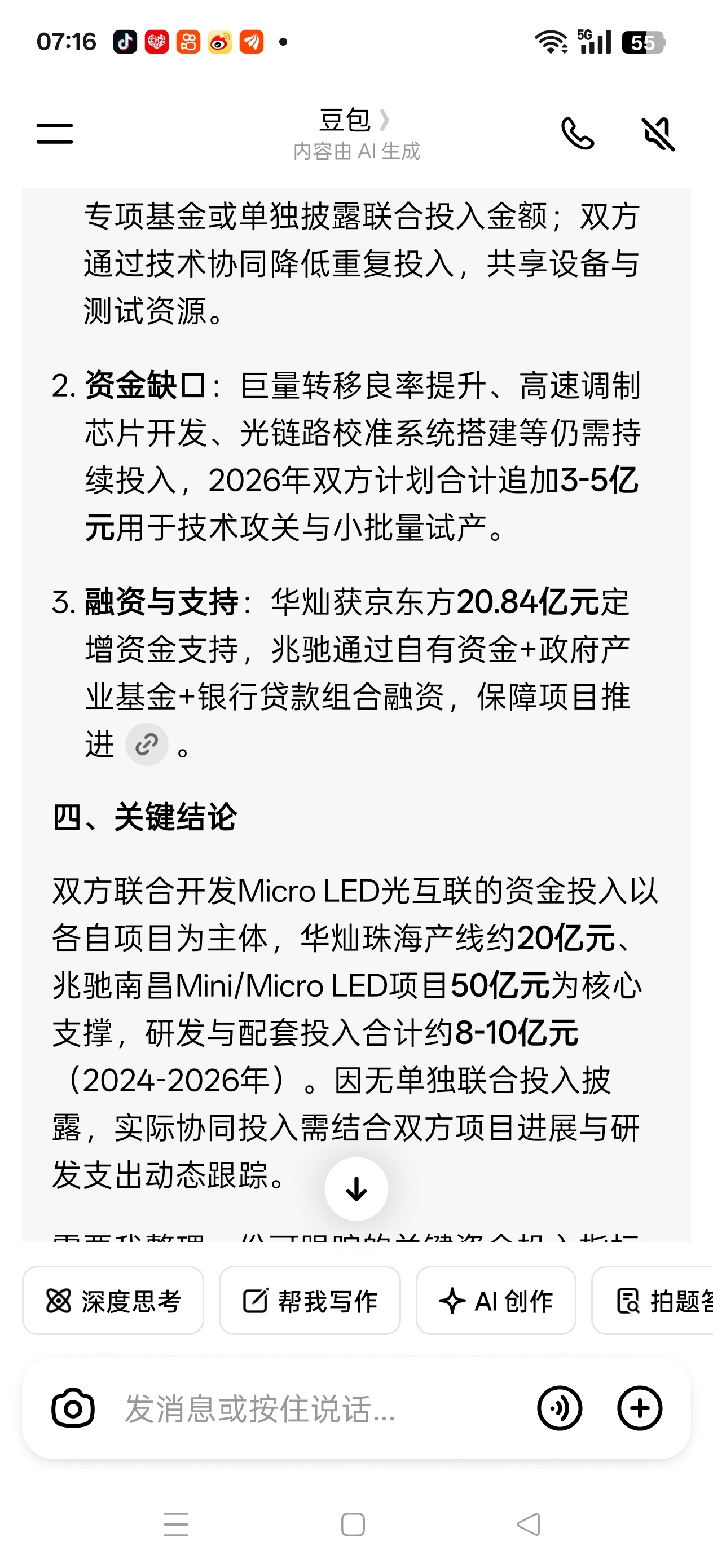 $兆驰股份(SZ002429)$ 兆驰股份在向硬科技转型道路上正在迎来千载难逢的政策支持。为了攻克MicroLED光互联技术,兆驰股份已经投入了50亿,正在资金有缺口时,1月15中国银行发布增加支持科技创新企业资金,