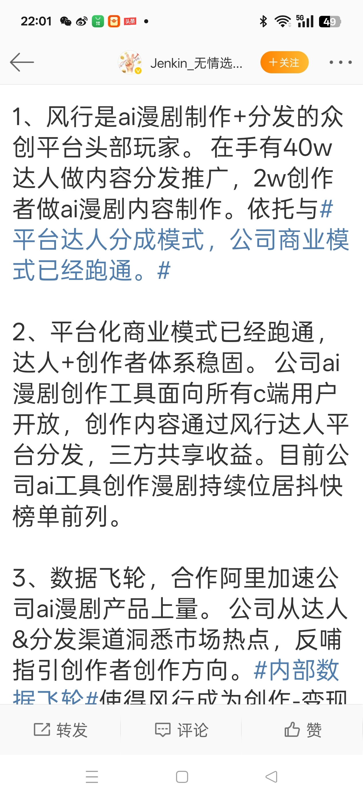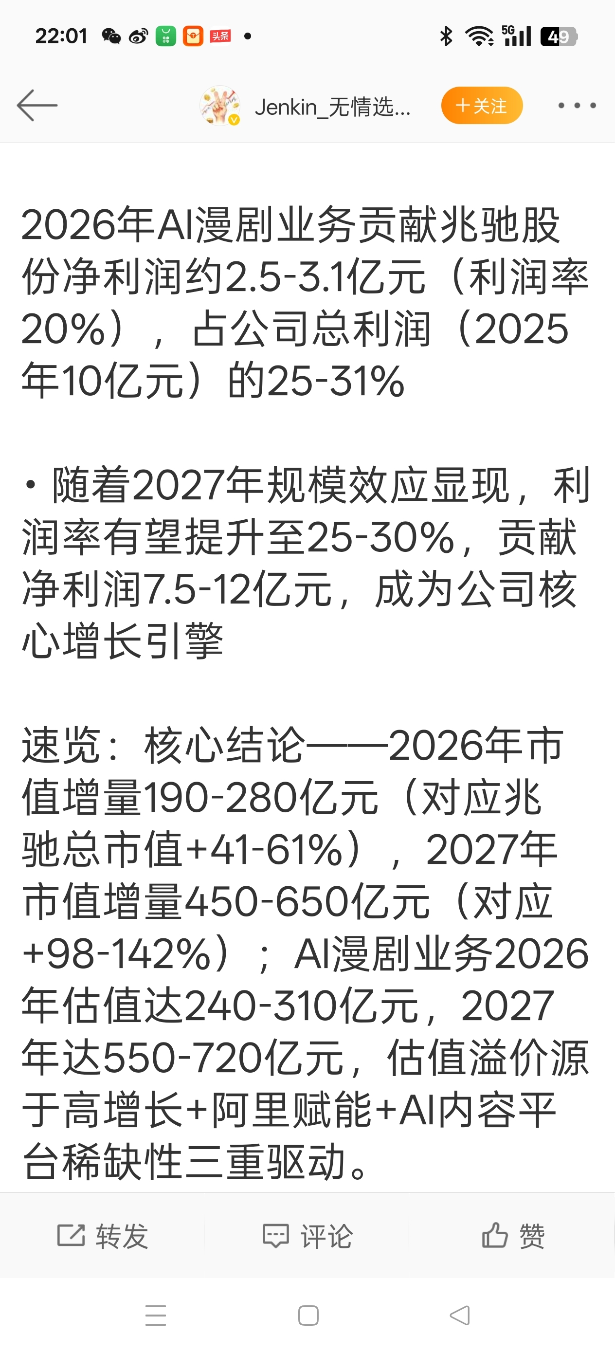 $兆驰股份(SZ002429)$ 都知道风行在线与阿里云合作是利好,今天看见某个大V把风行在线对兆驰股份利润贡献率,市值贡献率给出具体成长性增长百分比。周末很多推荐Ai+应用,Ai+智能体及阿里云概念股票的文章都千篇一律用的2025年