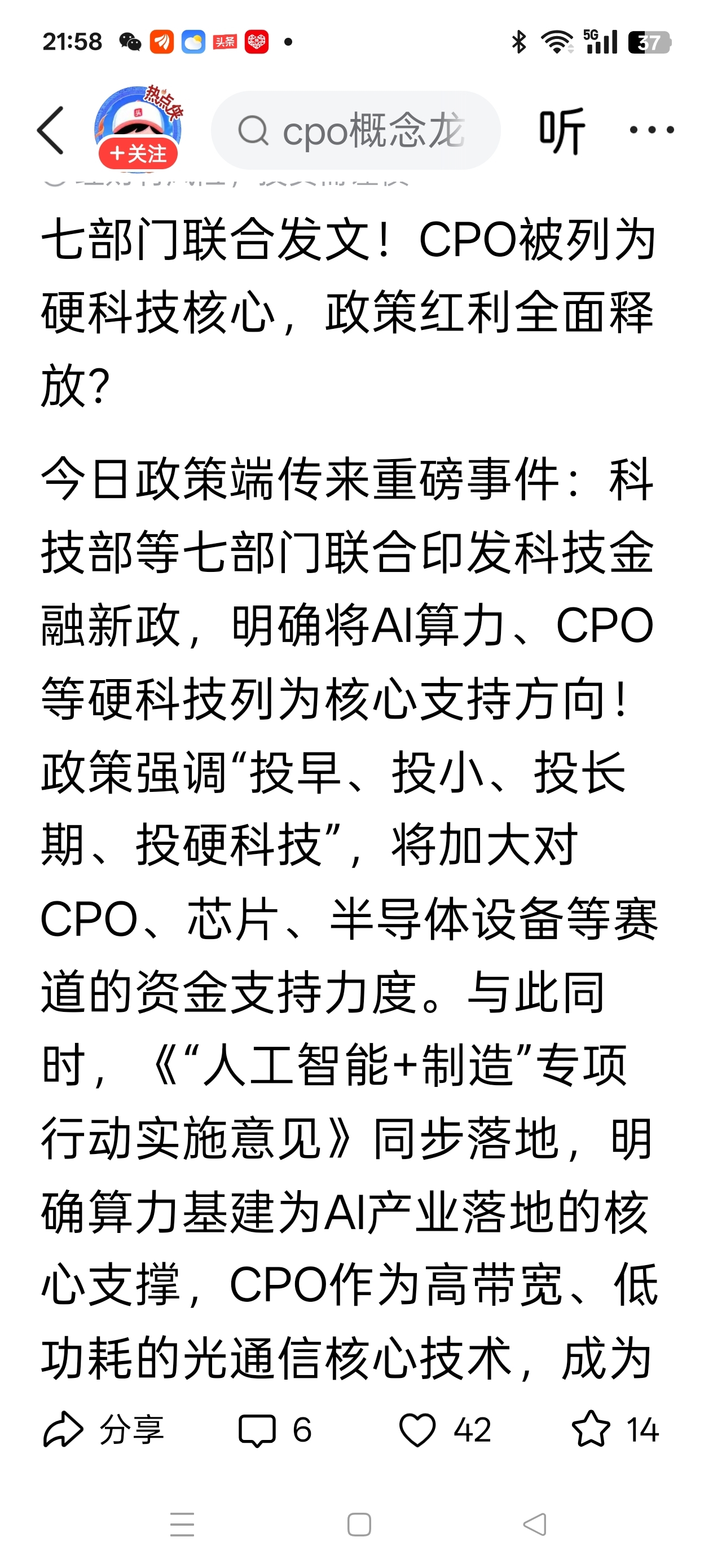 企业的成长肯定离不开国家政策支持。刚刚发布支持CPO政策,对兆驰股份这种硬科技公