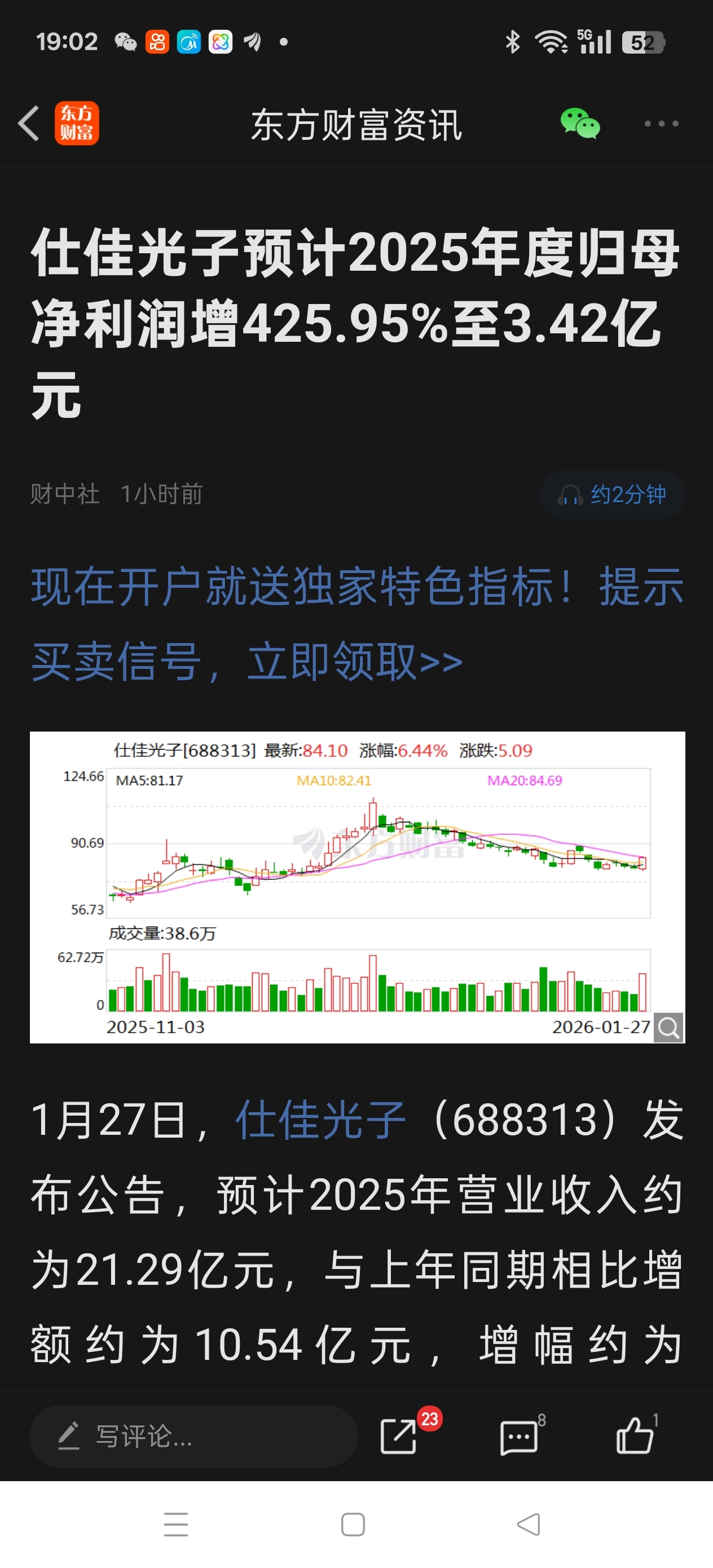$兆驰股份(SZ002429)$ 刚刚看见仕佳光子2025年净利润预增400多%公告,由此想到两支股票业务的高度一致性,2026年兆驰股份业绩或许在重复2025年仕佳光子的故事。