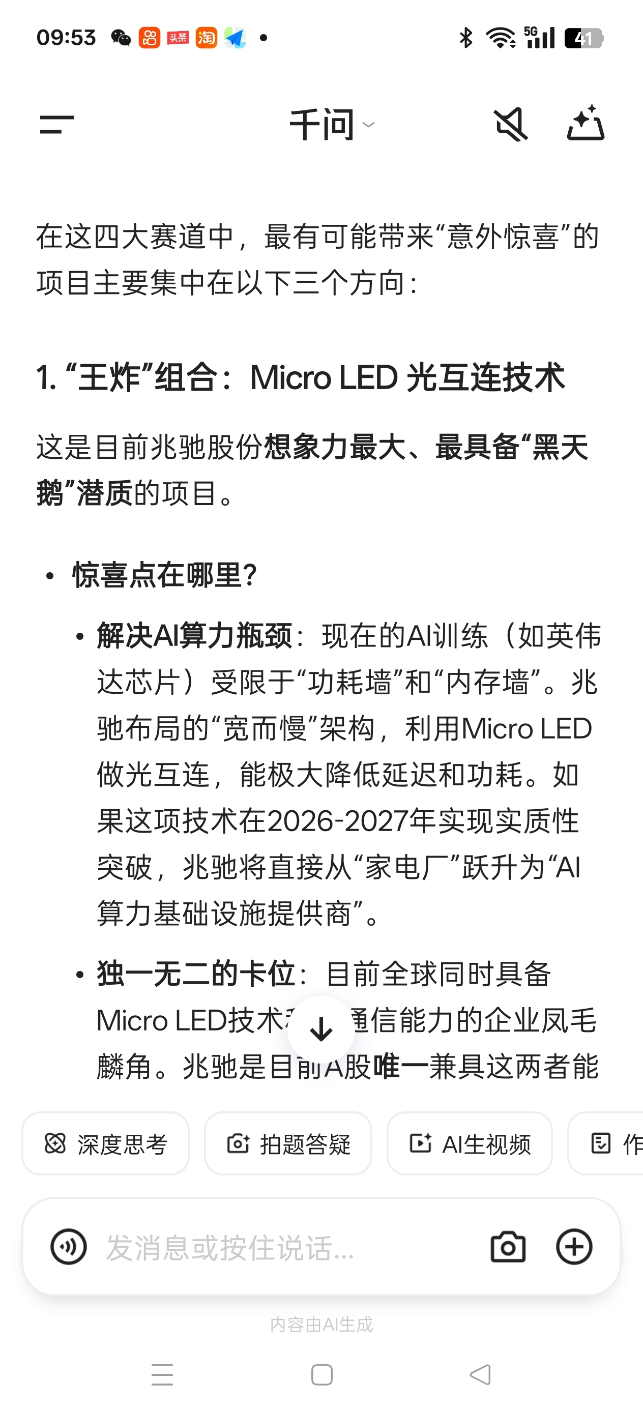 千问预计兆驰股份四大赛道最有可能给出惊喜及爆款的项目1.MicroLED光互联。