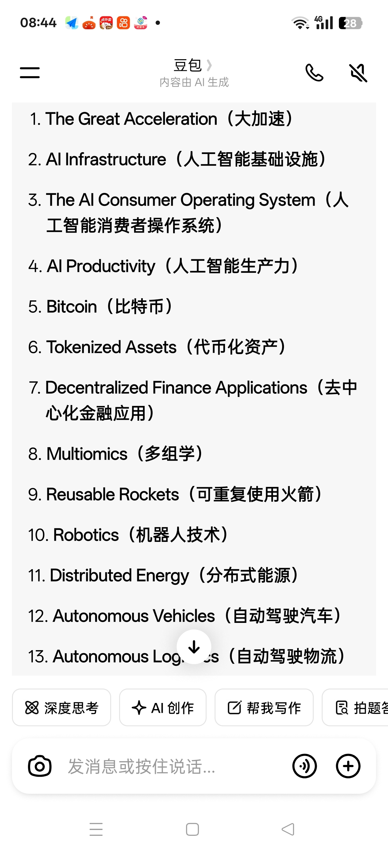 木头姐投资的13个赛道个别赛道还要请教Ai。关于人工智能生产力方面,大加速方面是