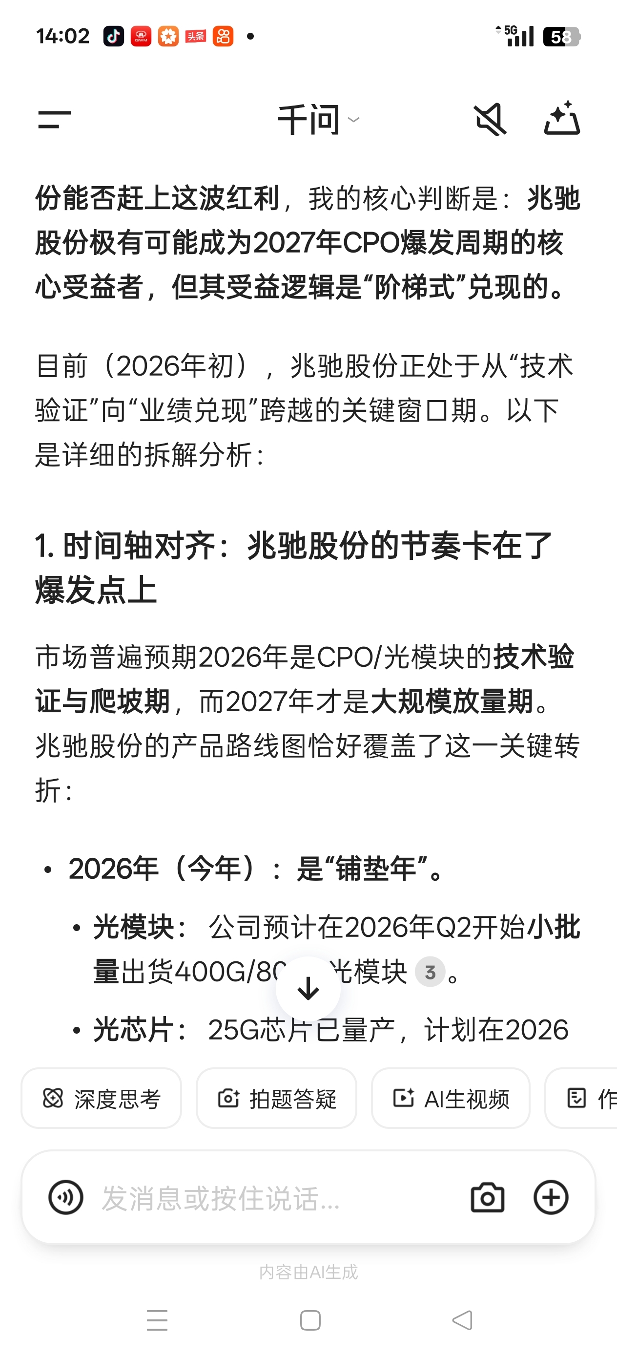 兆驰股份光模块业务比头部公司产品迭代落后半年到一年左右。可是面对明年2027年C
