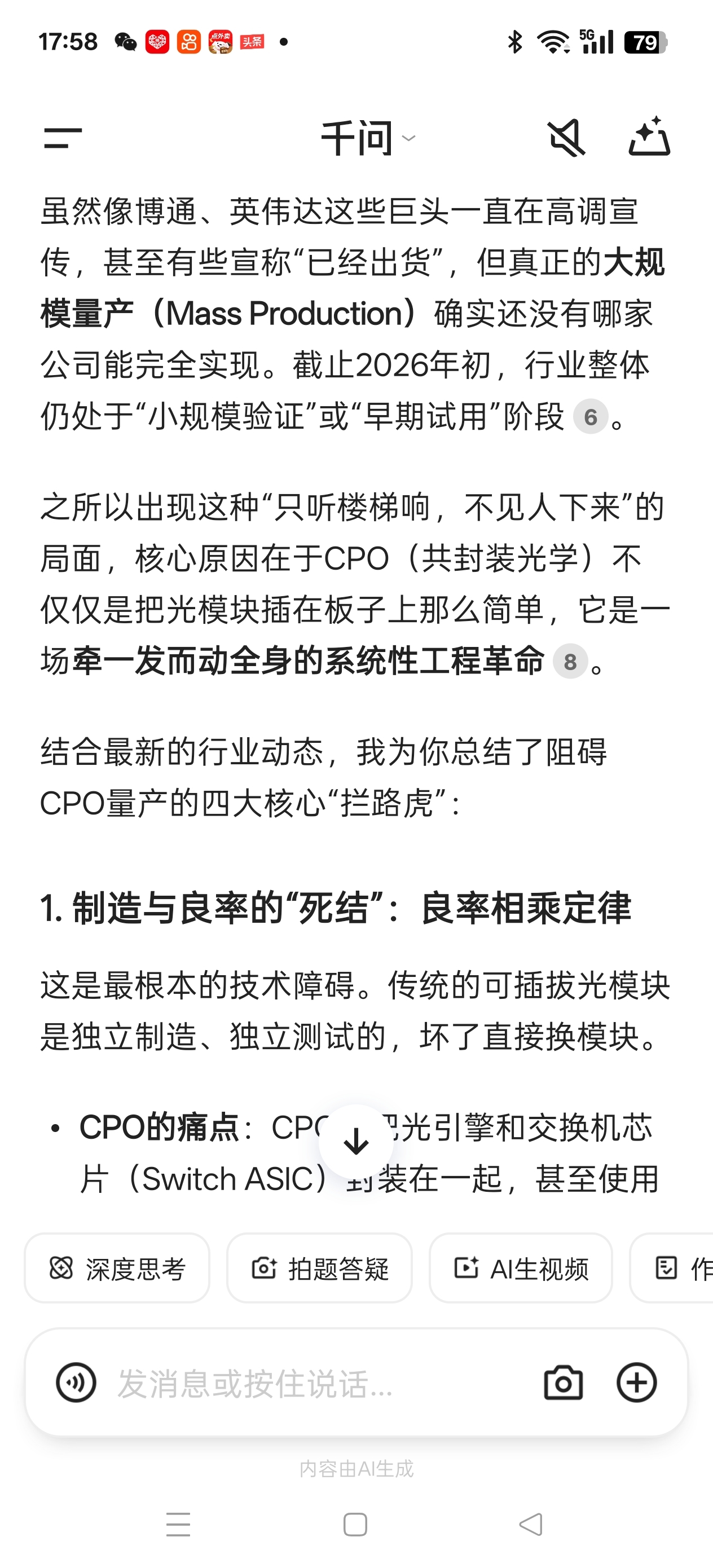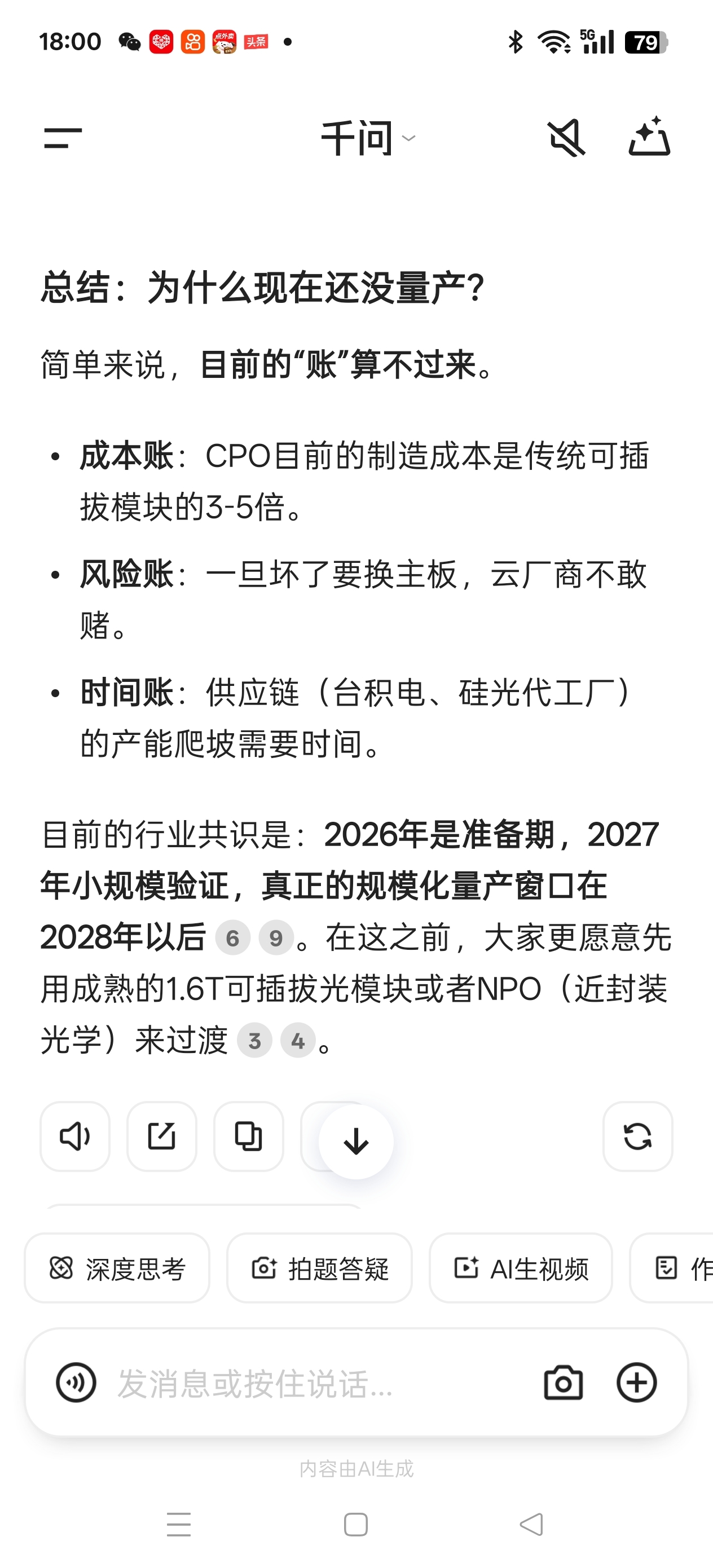 $兆驰股份(SZ002429)$ 刚才在头条看见一篇大V文章19个CPO龙头涨停板,里面没有兆驰股份名字,在网上查了查目前没有一家公司量产CPO。明年后年的很难说龙头是谁,个人认为明年后年CPO龙头不除外是兆驰股份,因为明年光芯片高端产品量产成本优势明显。