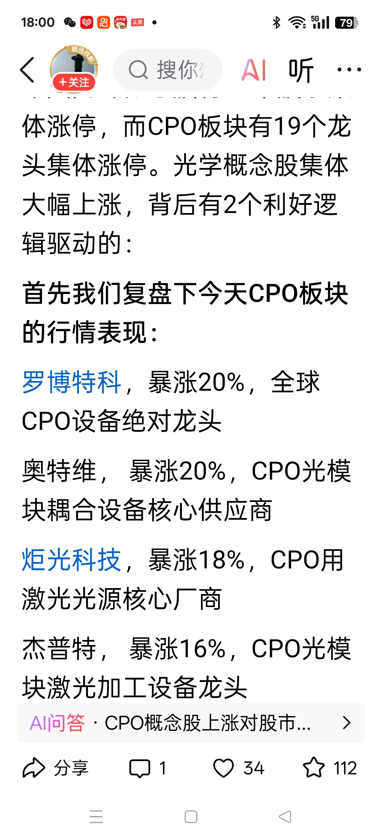 刚才在头条看见一篇大V文章19个CPO龙头涨停板,里面没有兆驰股份名字,在网上查