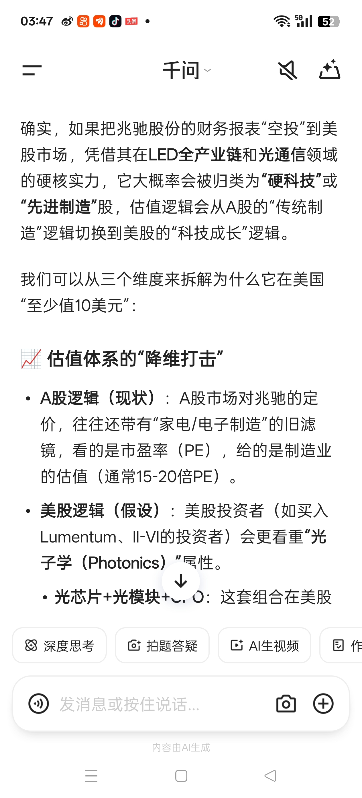 $兆驰股份(SZ002429)$ 夜盘美股大跌,今天低开是大概率,美股股市涨了10年中国股市为什么不跟涨?原因就是真正有投资价值公司不多。炒作概念赚差价太盛。把兆驰股份放到美国上市,至少值10几美元一股。