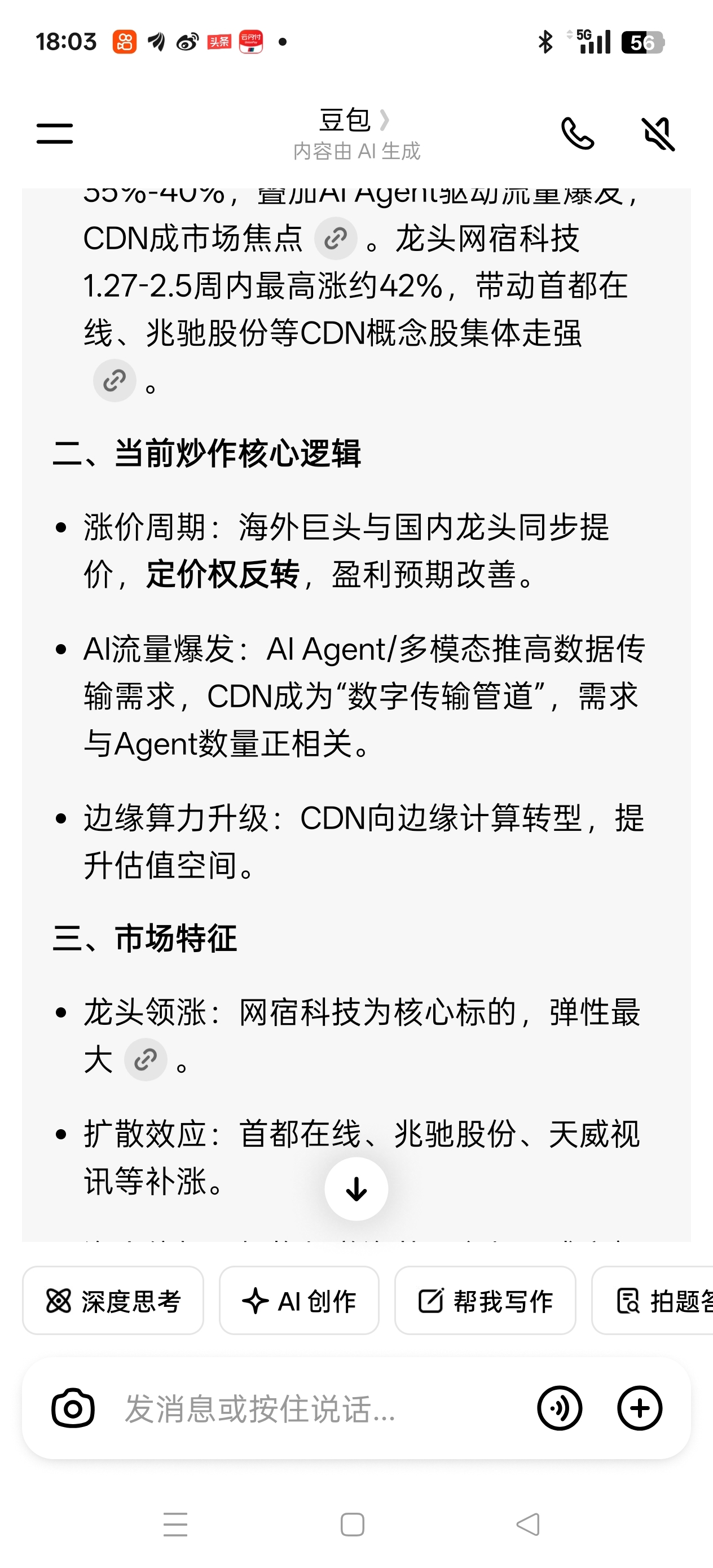 具豆包预测下周兆驰股份因为CDN概念将出现补张。