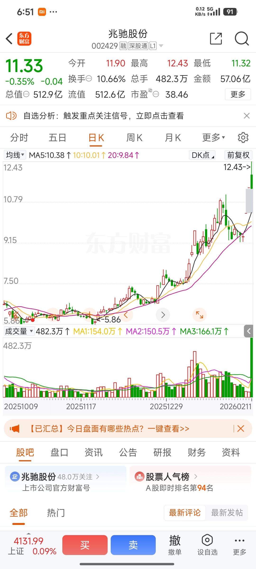 $兆驰股份(SZ002429)$ 成交量太大,主力努力在出货了!