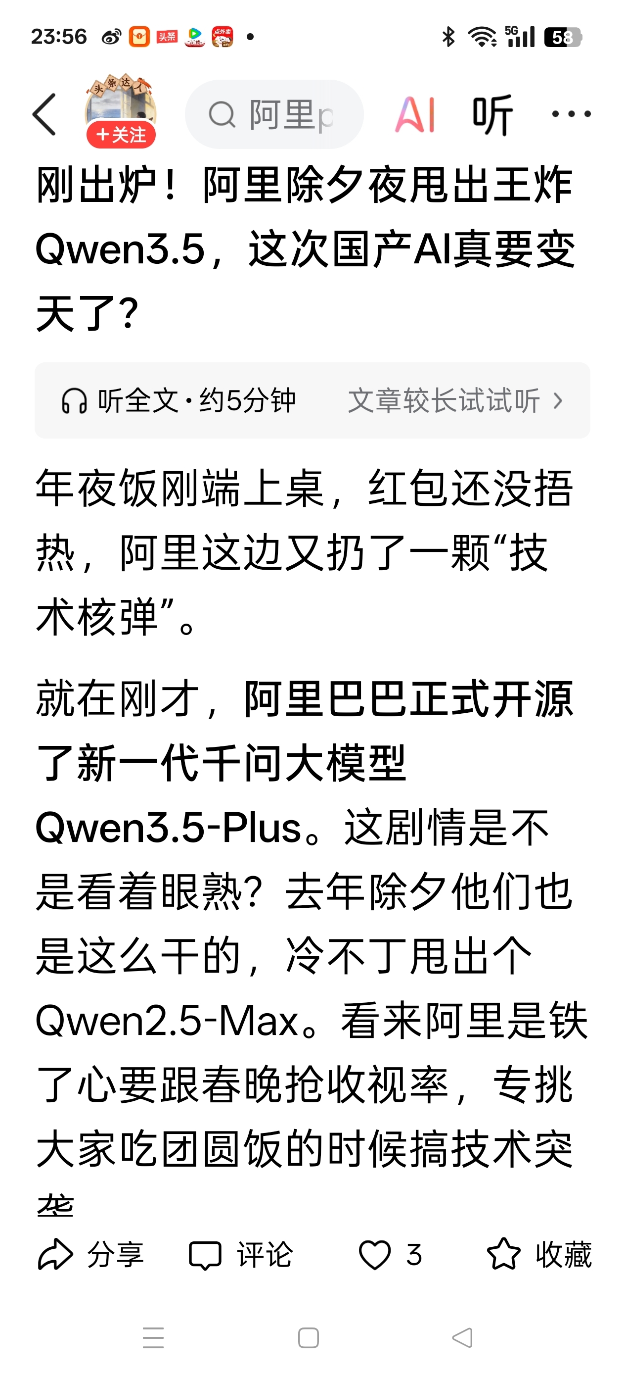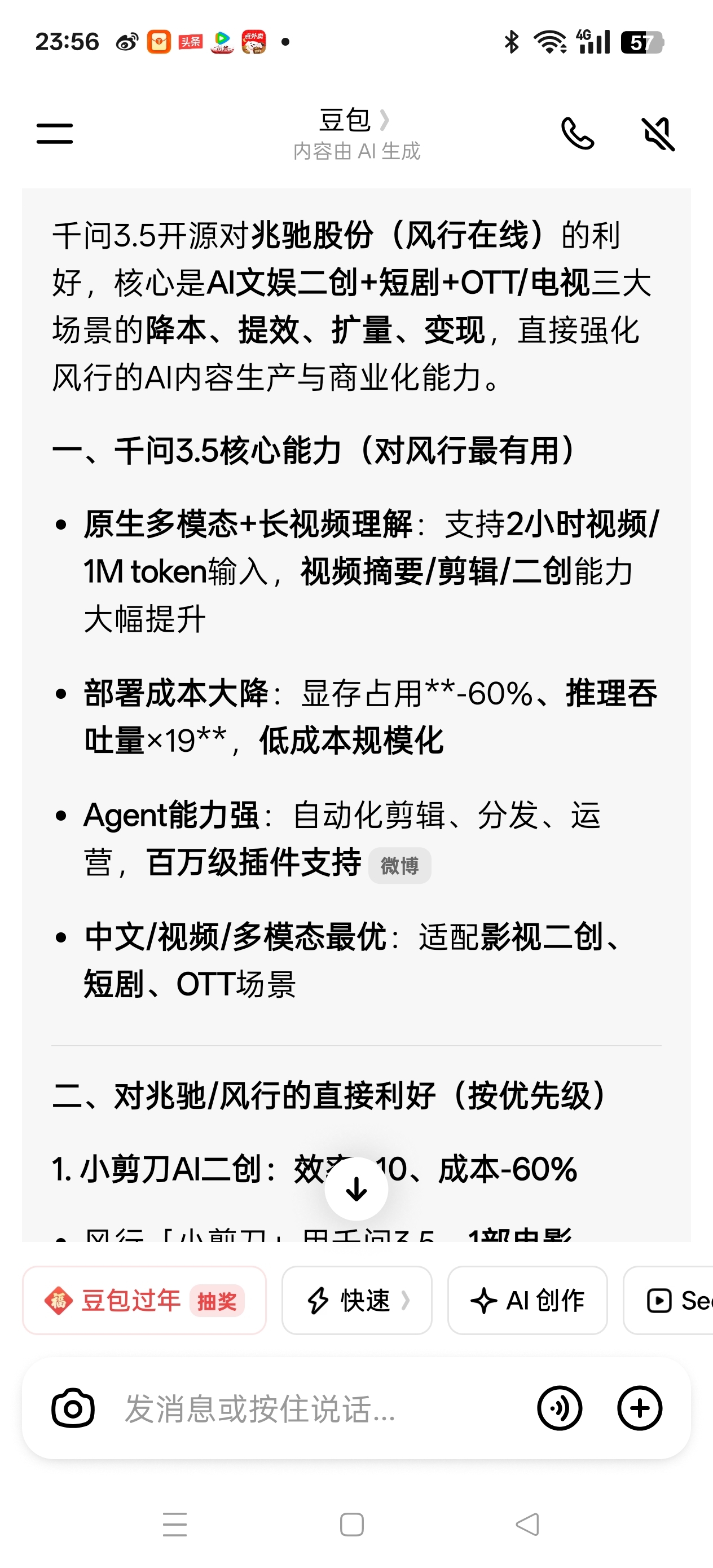 火山引擎热度还在,刚刚千问3.5开源大模型又发布了。对兆驰股份利好明显。