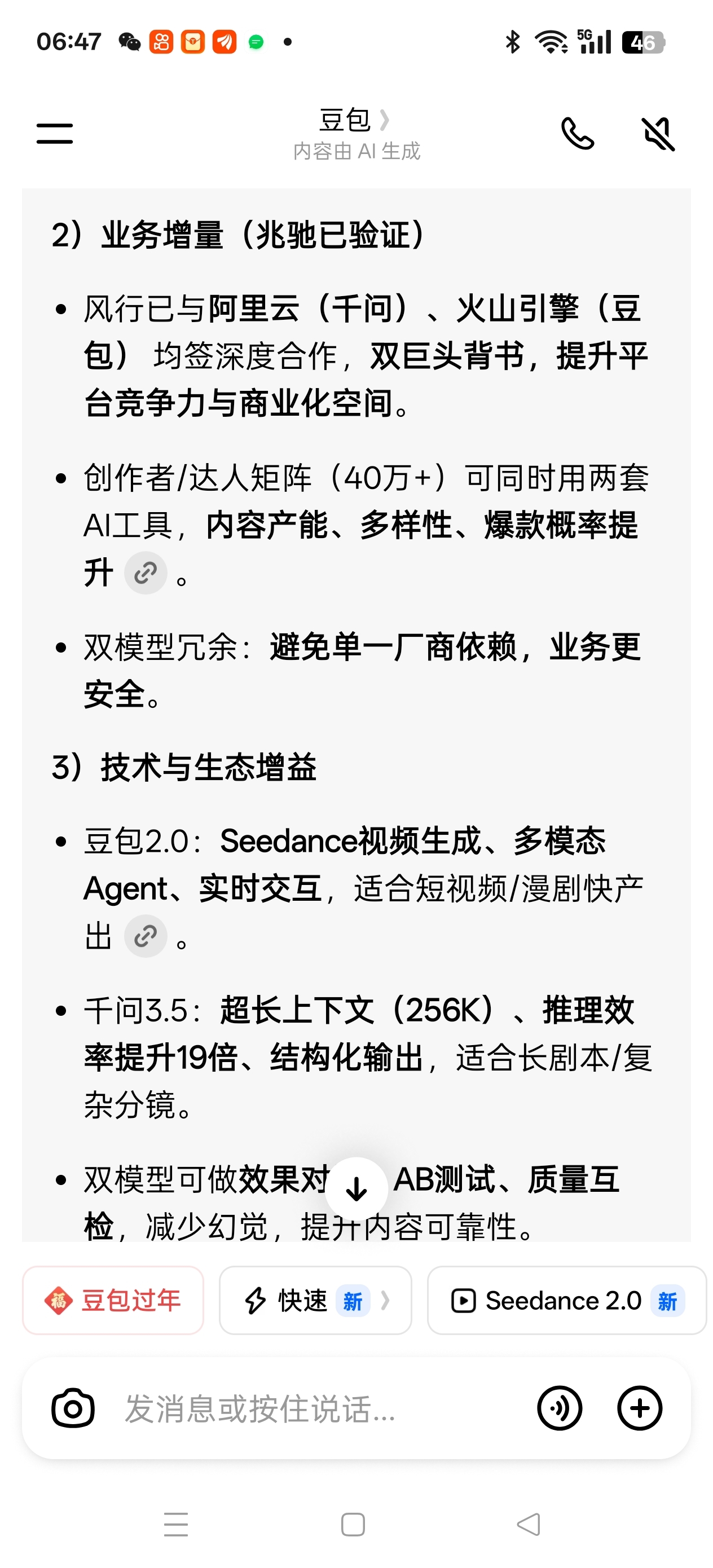 就想知道截止目前为止,深度绑定,合规同时接人火山引擎2.0及千问3.5大模型的A