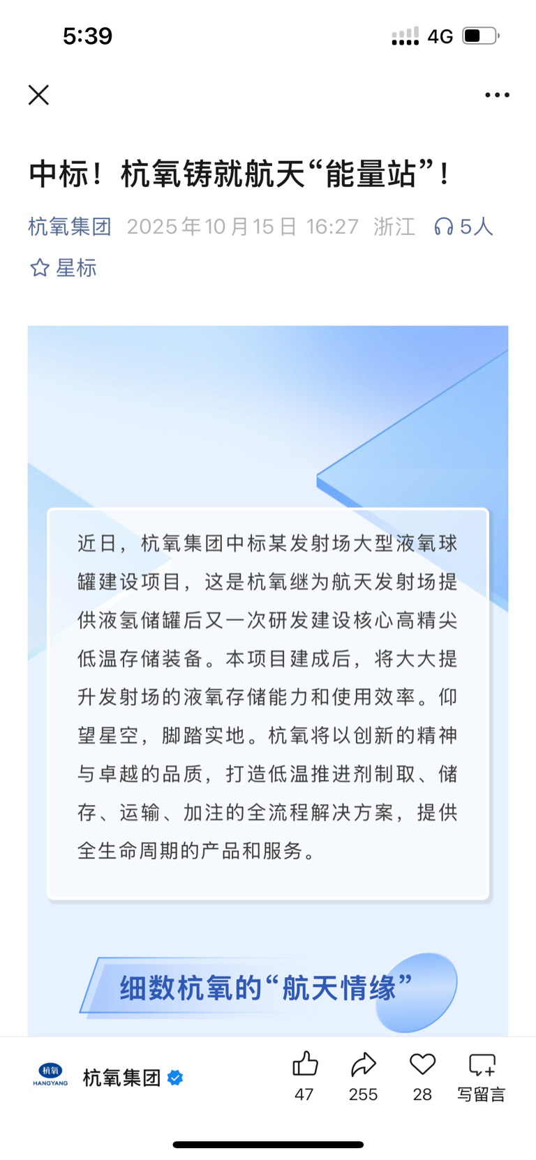 $杭氧股份(SZ002430)$ 航天员登月赞助商