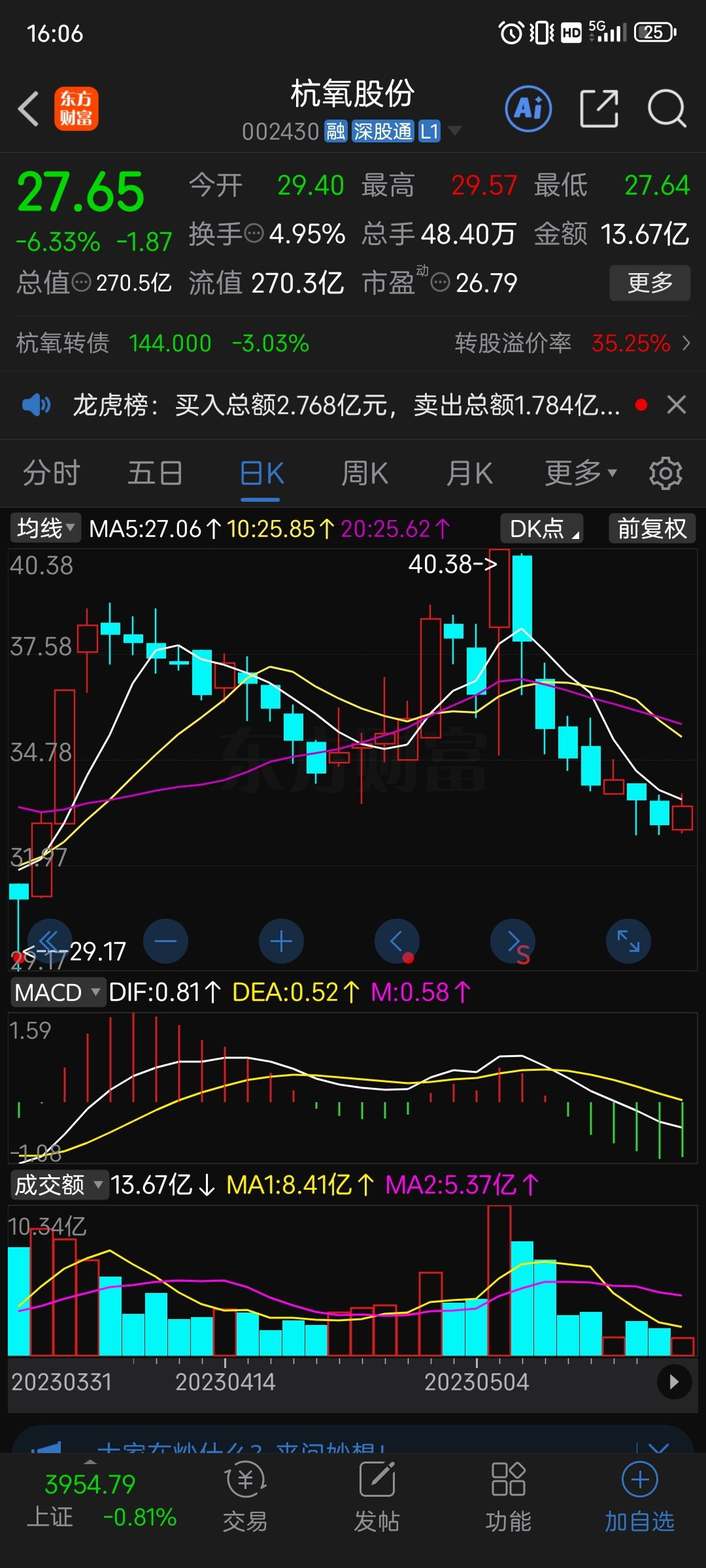 $杭氧股份(SZ002430)$ 这货每次就是这样,只要涨停后面连续阴跌