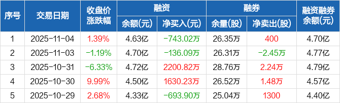 杭氧股份:融资净偿还743.02万元,融资余额4.63亿元(11-04)