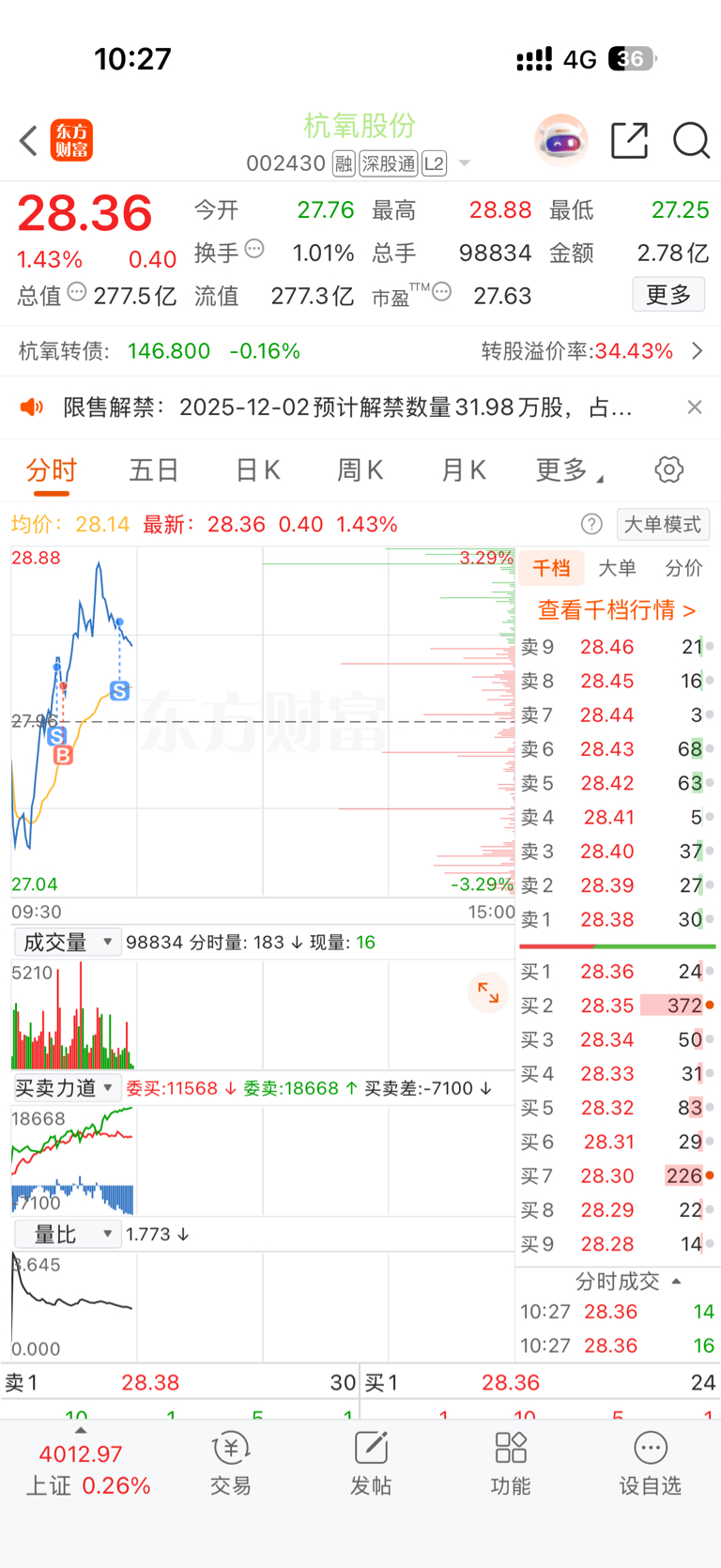 $杭氧股份(SZ002430)$ 不要急,我来降它